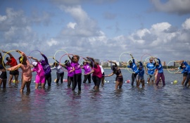 Prefeitura inova e leva Hidrodança para dentro do mar da Ponta Verde