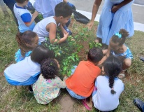 "É muito importante conscientizar nossas crianças e fazê-las entender qual a melhor maneira de preservar. Nós assumimos os cuidados com essa praça que fica em frente a escola para que elas tenham contato diário com o meio ambiente e possam cuidar dessas plantinhas que eles mesmo participaram do plantio. Queremos que as pessoas que circulam aqui também mantenha o compromisso de cuidar", contou.
