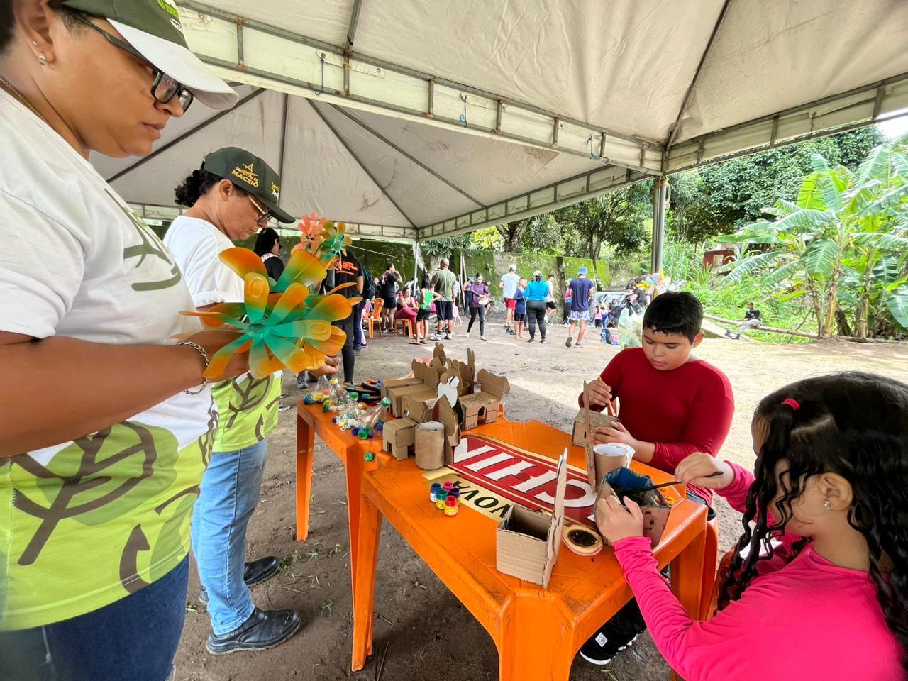 Durante o evento, a equipe de Educação Ambiental promoveu pintura facial, oficina de brinquedos sustentáveis e orientações sobre práticas ambientais, incentivando a conscientização de forma lúdica e acessível, especialmente para o público infantil. A programação também contou com uma trilha ecológica na Área de Proteção Ambiental (APA) do Catolé, localizada na antiga área da Fábrica Carmem.
