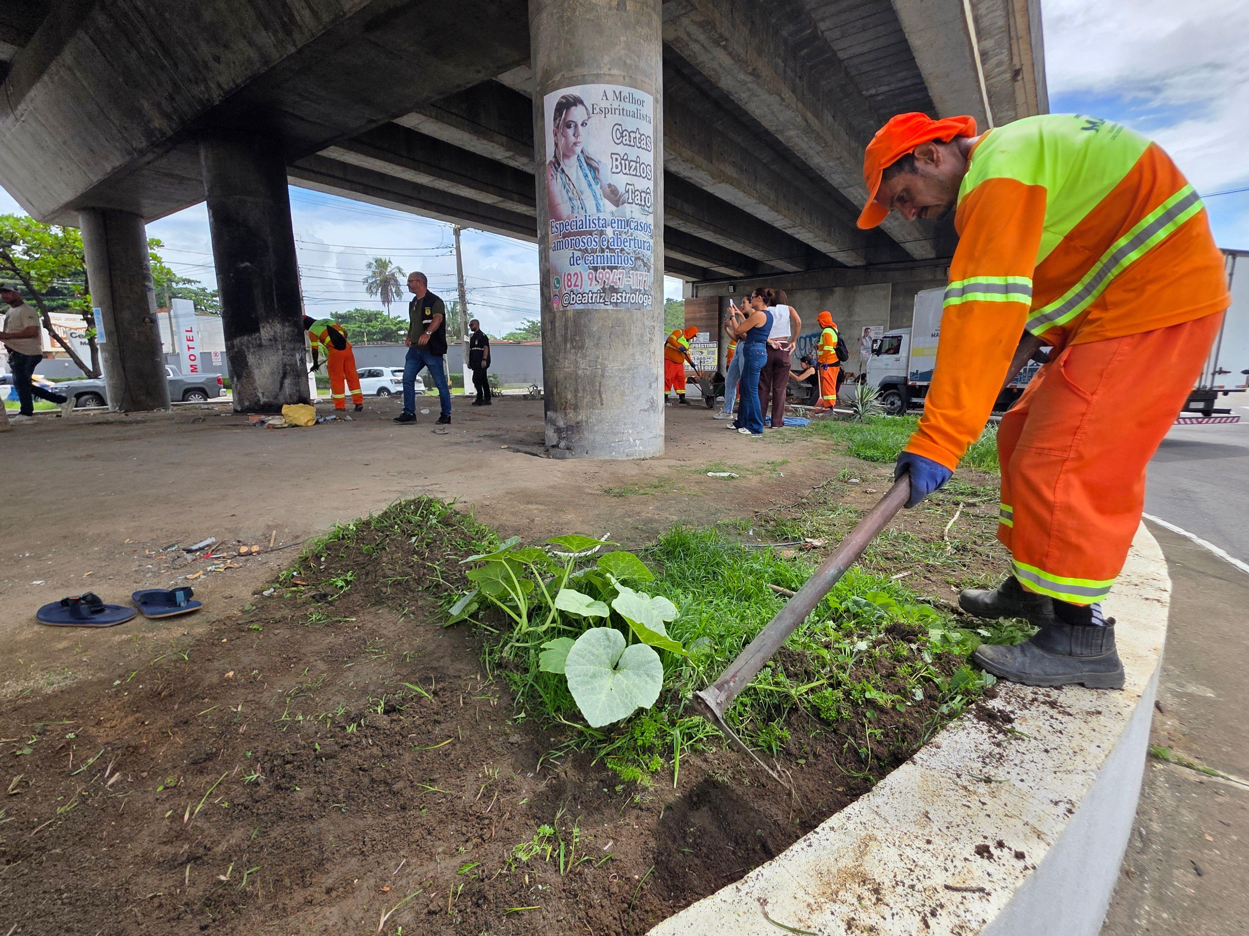 Área do viaduto de Jacarecica recebe ação conjunta de melhoria urbana