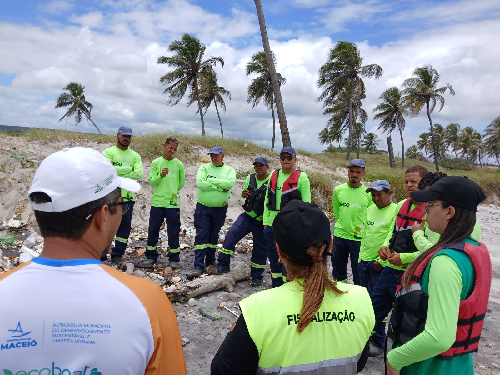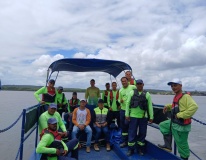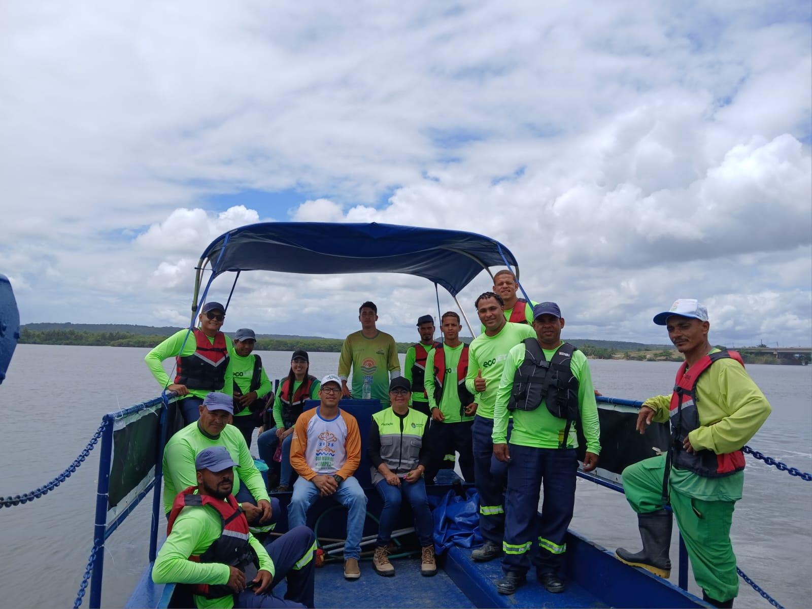 Em um dia voltado para o aprendizado, colaboradores do Ecoleta, iniciativa inovadora que substituiu a tração animal por triciclos elétricos no recolhimento de resíduos na capital, conheceram, na última quinta-feira(16), o trabalho dos Ecoboats, catamarãs responsáveis pela limpeza da Lagoa Mundaú, no Vergel do Lago.