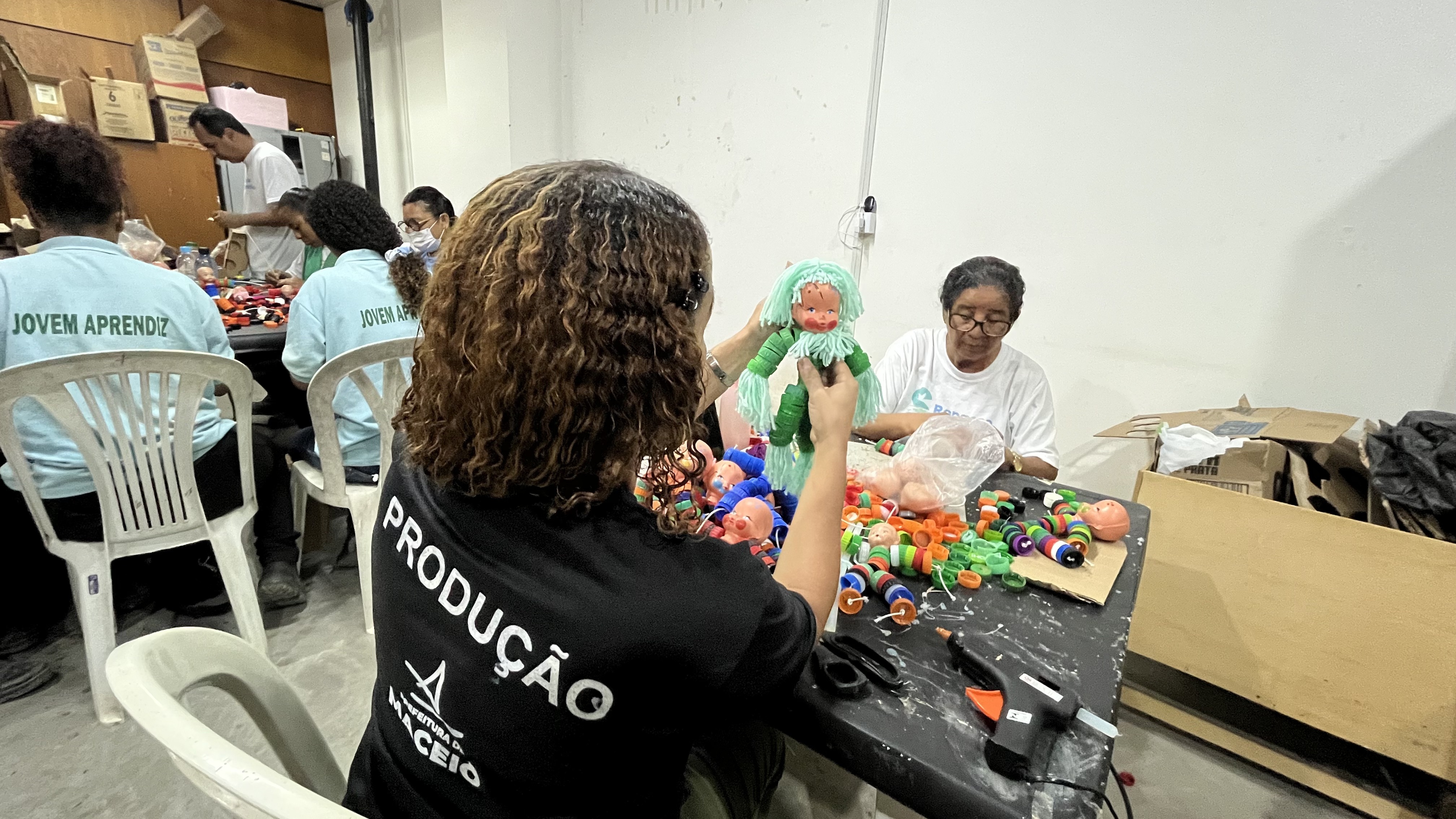 Toda a produção dos brinquedos sustentáveis, que serão entregues neste sábado(11), numa ação que beneficiará as crianças do Flexal, em Bebedouro, conta com o apoio dos jovens aprendizes da Naturalle e Viambiental, empresas responsáveis pela coleta domiciliar na capital.