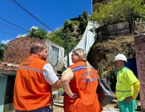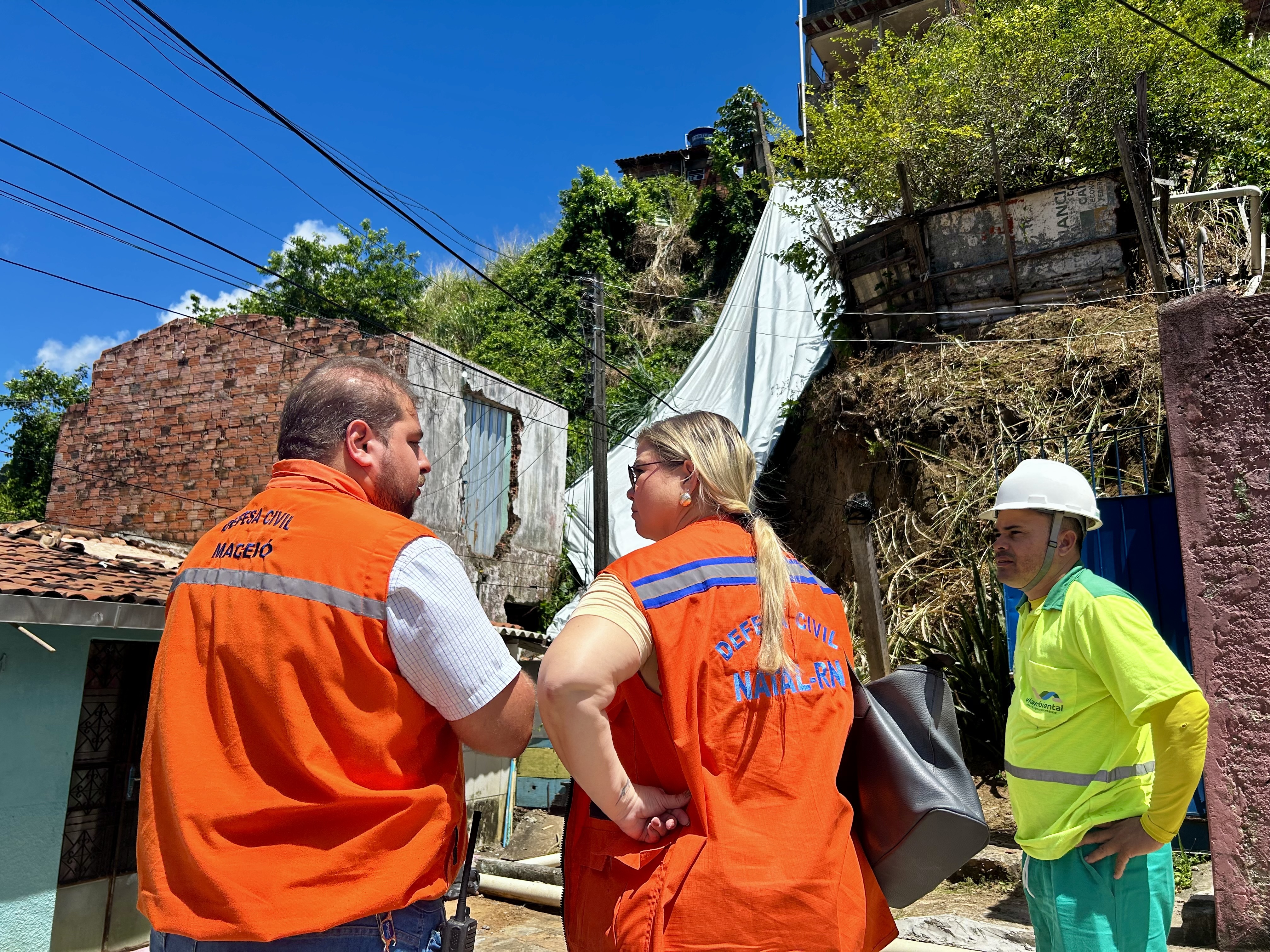 Outro trabalho realizado em Maceió, que foi visitado pela equipe acompanhada dos técnicos locais, foi a contenção marítima e a aplicação de lonas nas encostas, ação preventiva temporária até que as obras estruturais sejam realizadas, para evitar deslizamento de barreiras e o desabamento de residências.