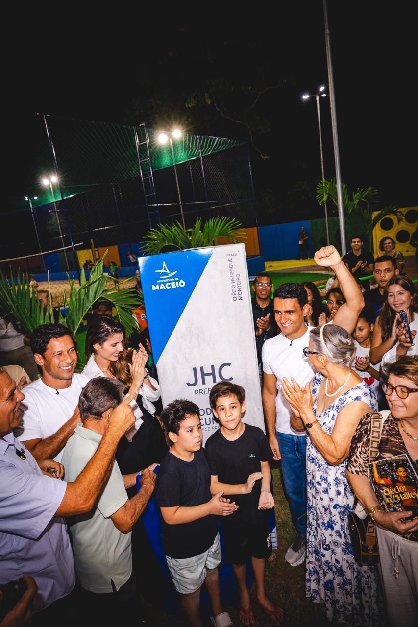 O prefeito de Maceió, JHC, e o vice-prefeito Rodrigo Cunha inauguraram, nessa sexta-feira (13), a praça Clécio Henrique Monteiro, no Conjunto José Tenório, na Serraria. O espaço público, que estava abandonado, foi totalmente revitalizado pela Prefeitura e entregue à população com novos equipamentos de esporte e lazer. Acompanhado da primeira-dama Marina Candia, JHC reforçou a importância do investimento e o resgate das áreas de convívio social para as comunidades.