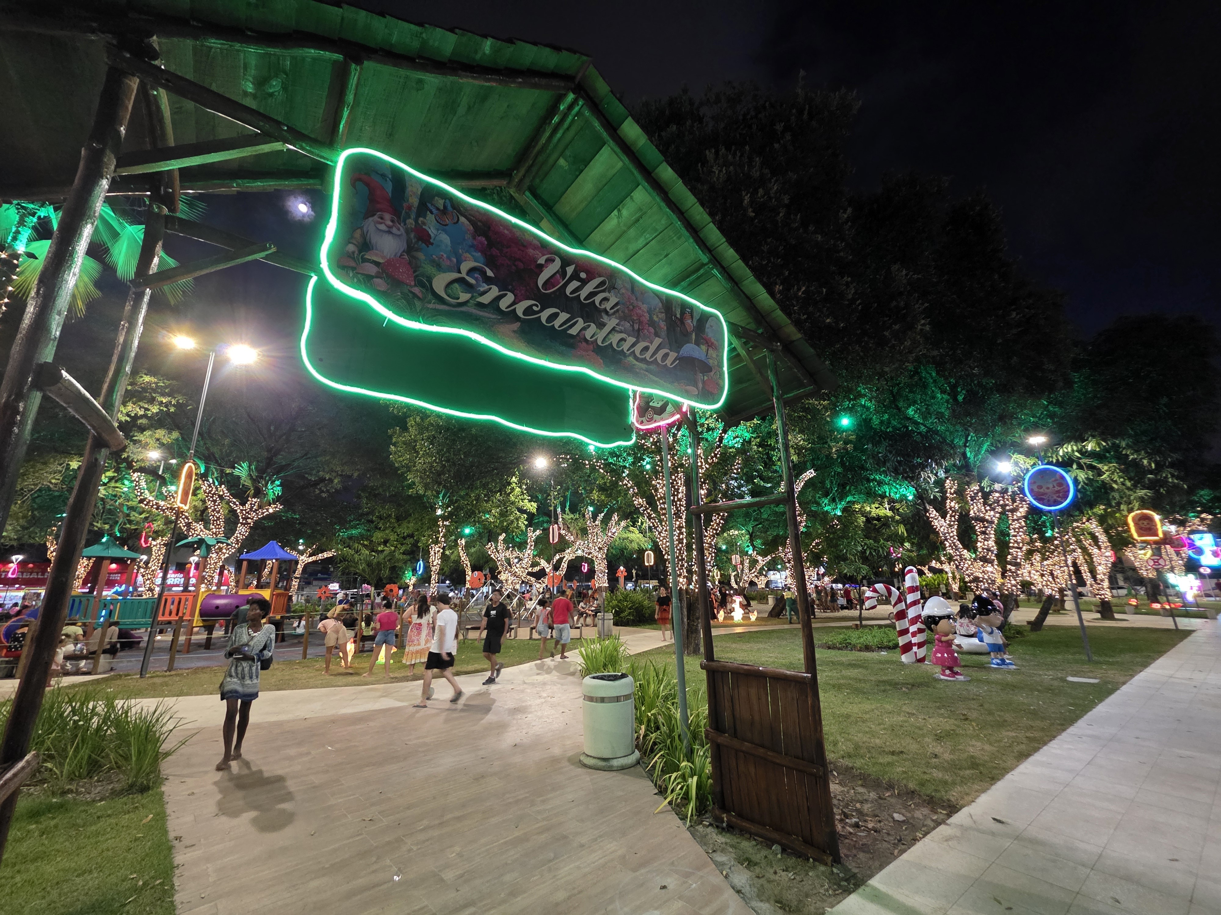 São mais de cinco mil metros de pisca-pisca nas árvores, 60 ornamentos aéreos, pórticos luminosos, decorações temáticas como a área dos foguetes, casa das fadas, dos duendes, poço cenográfico, balanço gigante, gangorras coloridas e muitos outros elementos temáticos que compõem Vila Encantada.
