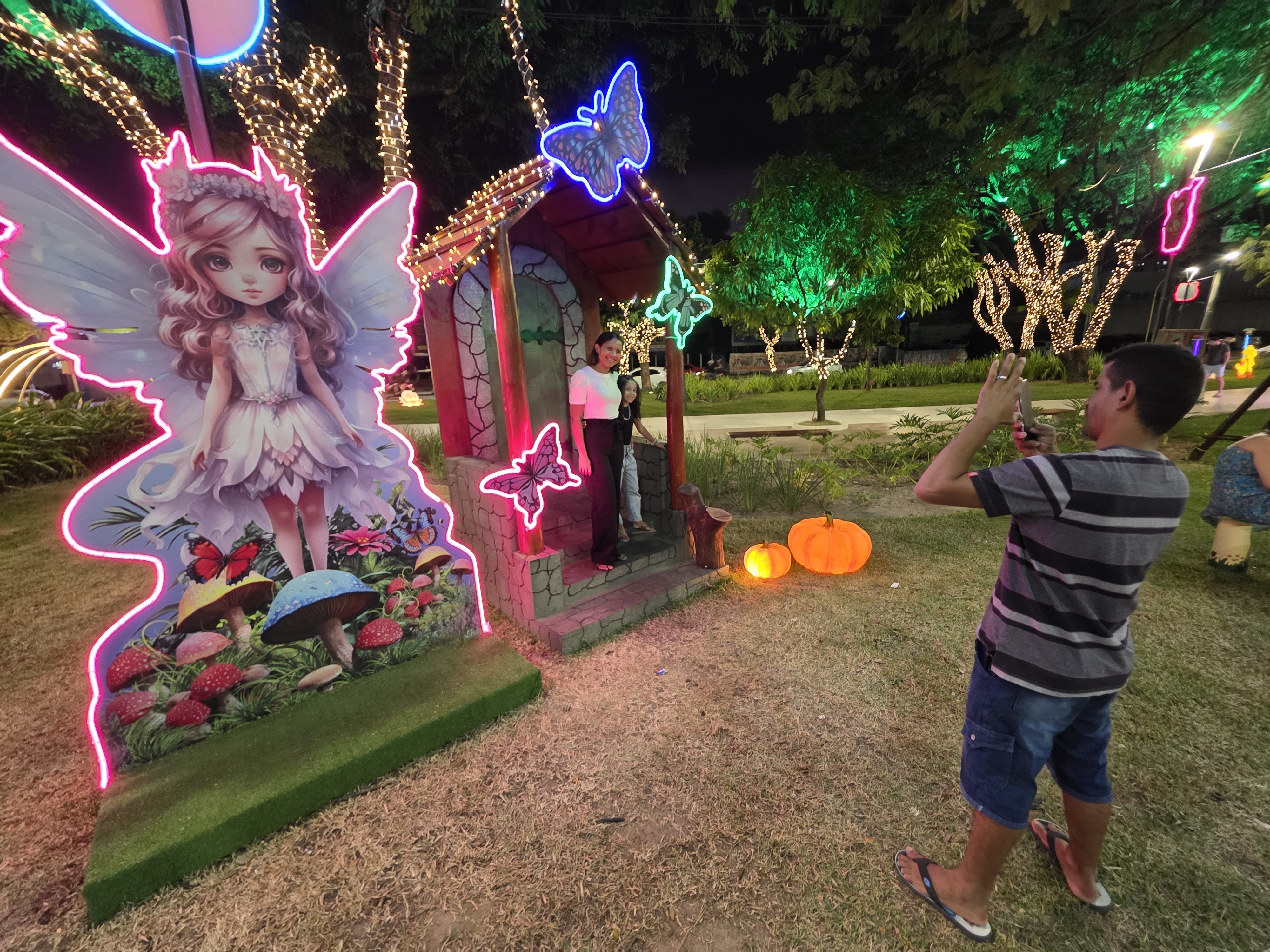 Uma área central e de livre acesso da capital alagoana virou um cenário mágico do universo infantil, com luzes, ornamentos, decorações e brinquedos lúdicos. O espaço permanecerá decorado até o dia 19 de outubro.