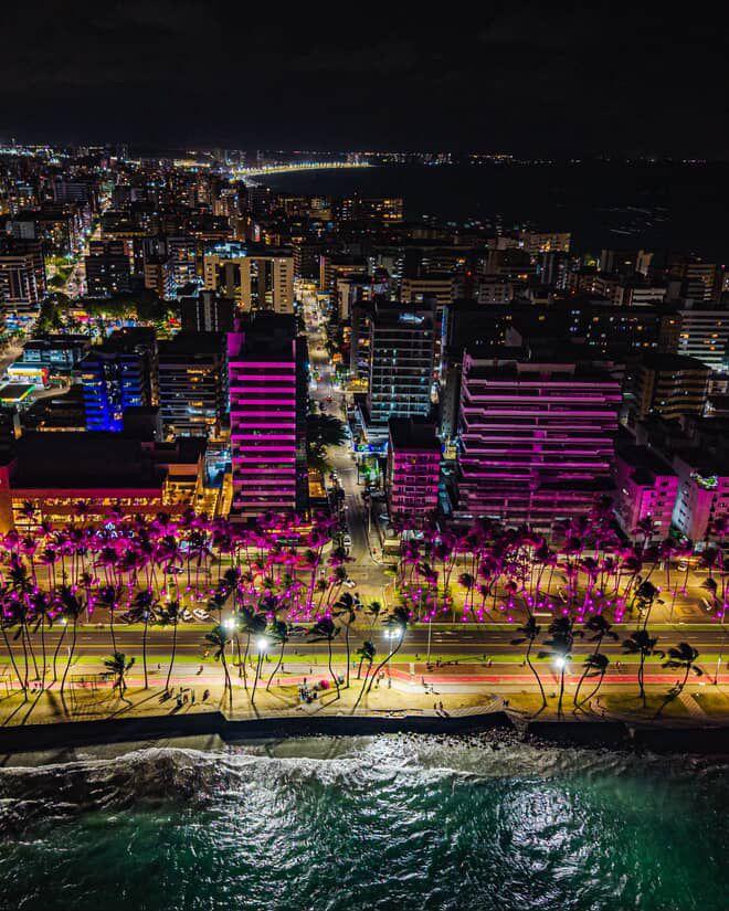 Cartões postais e viadutos de Maceió são iluminados em campanha contra o câncer de mama