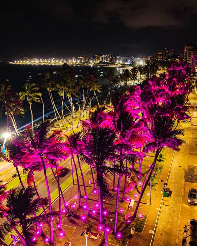 Mais de 720 projetores fixos de iluminação cênica da Ilumina Maceió projetam a cor rosa para um dos cartões postais de Maceió, o coqueiral da Avenida Silvio Viana. A Praça Gogó da Ema, na Ponta Verde e os pórticos em formato de jangada nos acessos à Maceió, no Pontal da Barra, Ipioca, Clima Bom e Benedito Bentes também estão sendo iluminados em alusão ao outubro rosa.