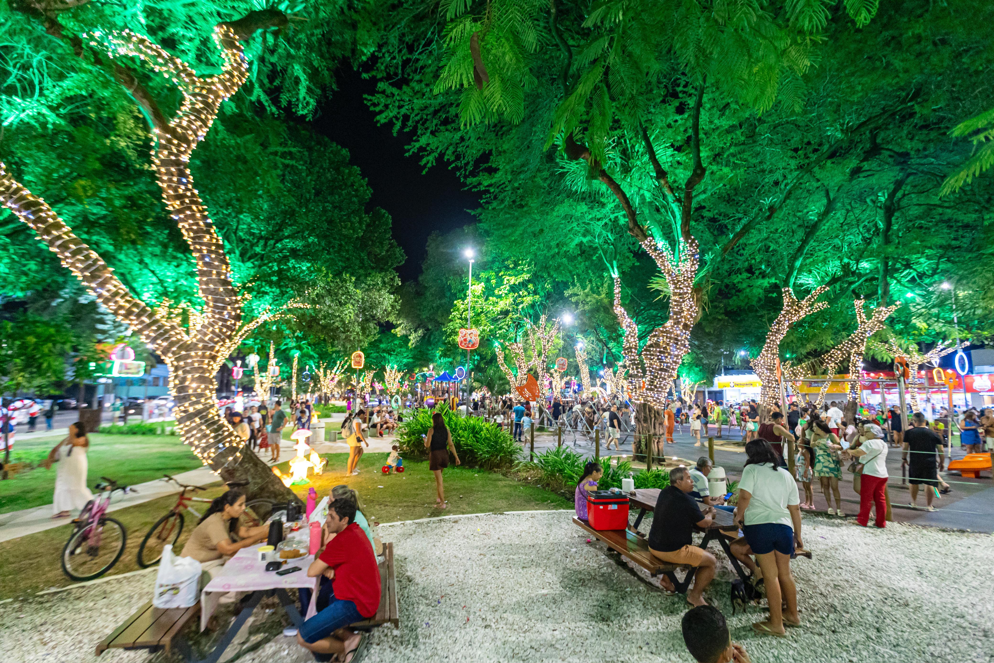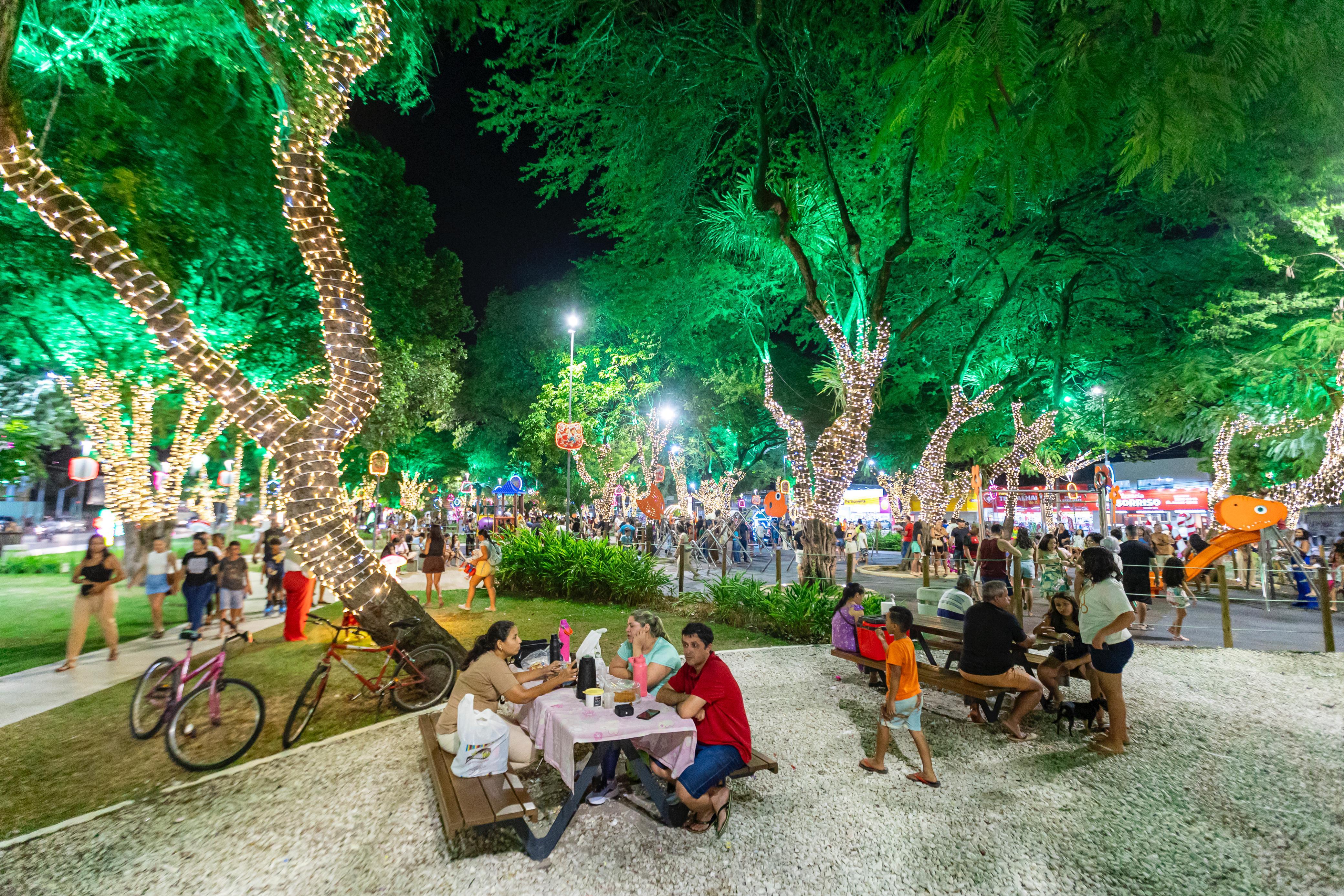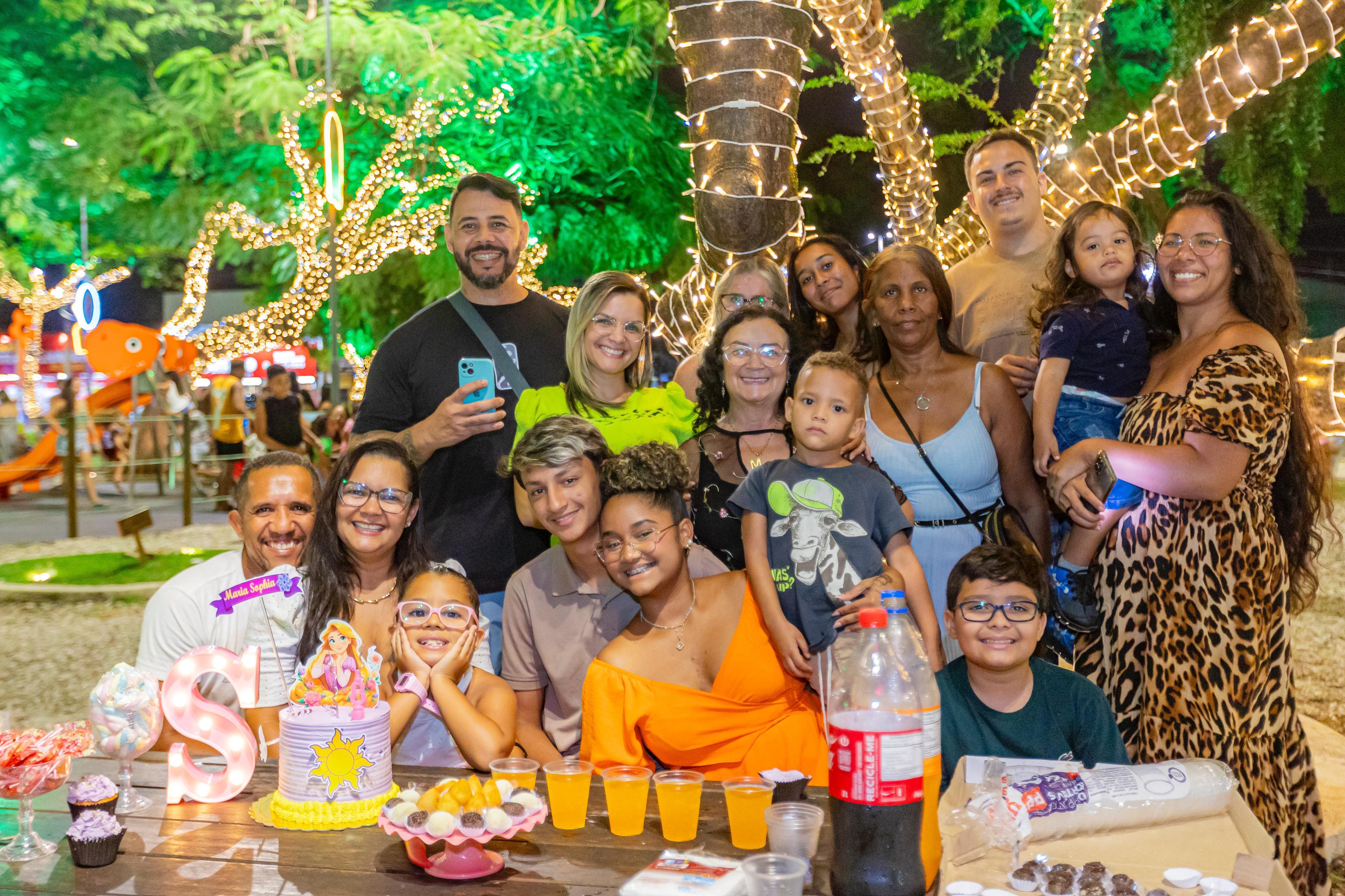 Em cima da mesa de madeira, a imagem de uma princesa adornava o bolo colorido, acompanhado de coxinhas, docinhos e refrigerantes, como pede toda boa festa de aniversário. Ao redor, a família reunida sorria, tirava selfies e entoava um animado “parabéns pra você” que ecoava entre as árvores iluminadas e brinquedos do Parque Centenário. No coração de Maceió, o espaço, decorado com elementos infantis para a Vila Encantada da Prefeitura de Maceió, virou cenário de celebrações e momentos de união e afeto.