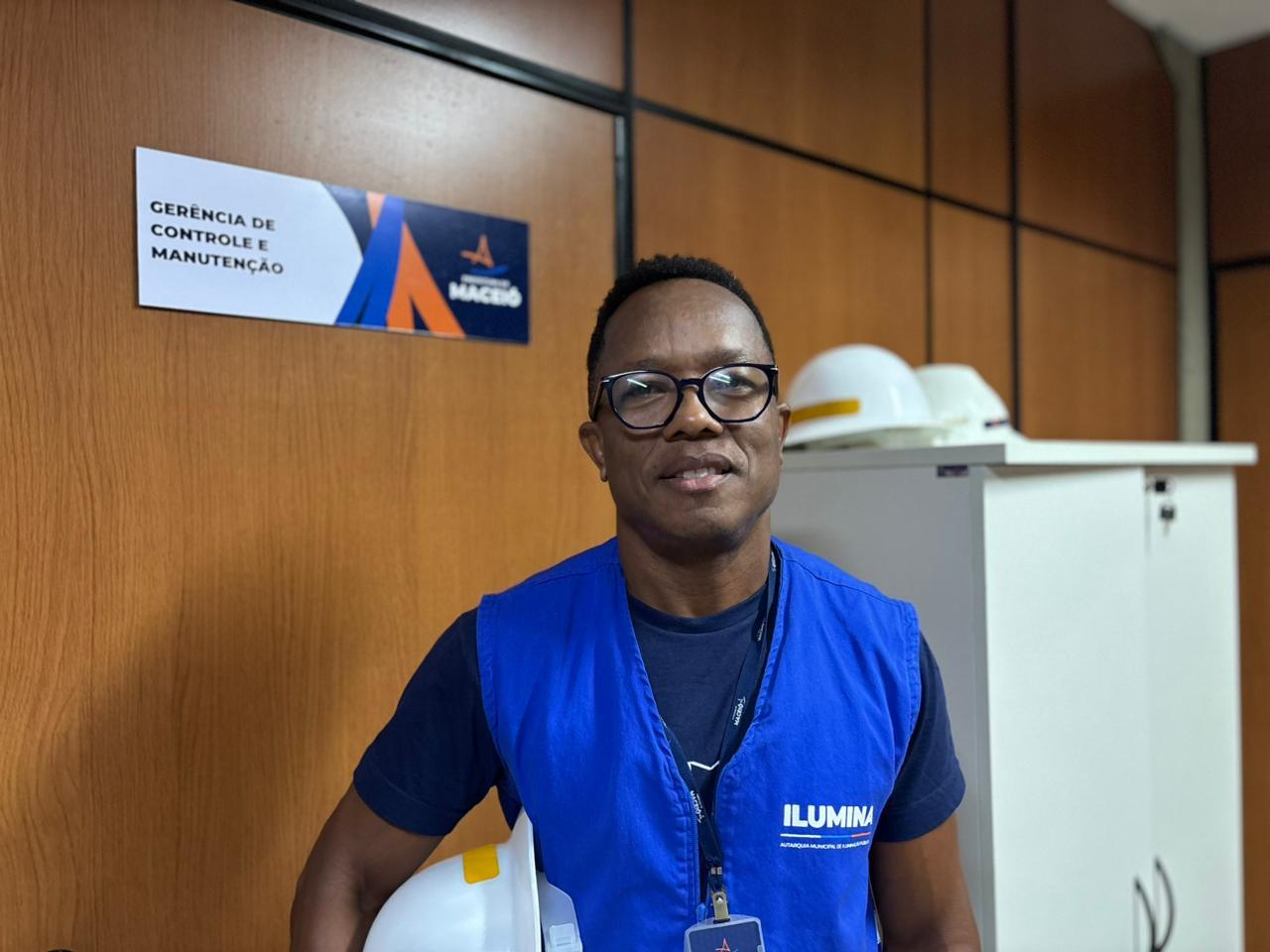 O trabalho no setor de fiscalização da autarquia garante o funcionamento dos mais de 80 mil pontos de iluminação de Maceió. Servidor público concursado, ele relembra com carinho o início da carreira.