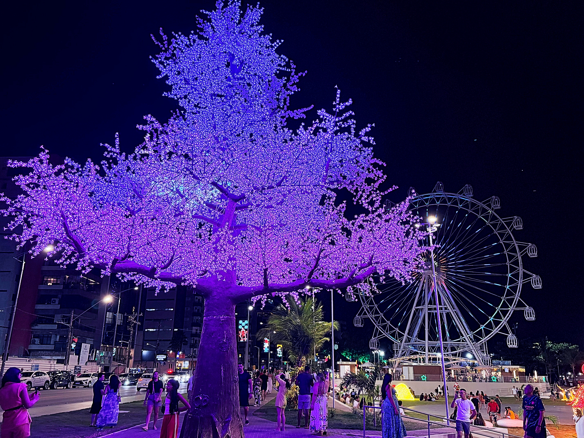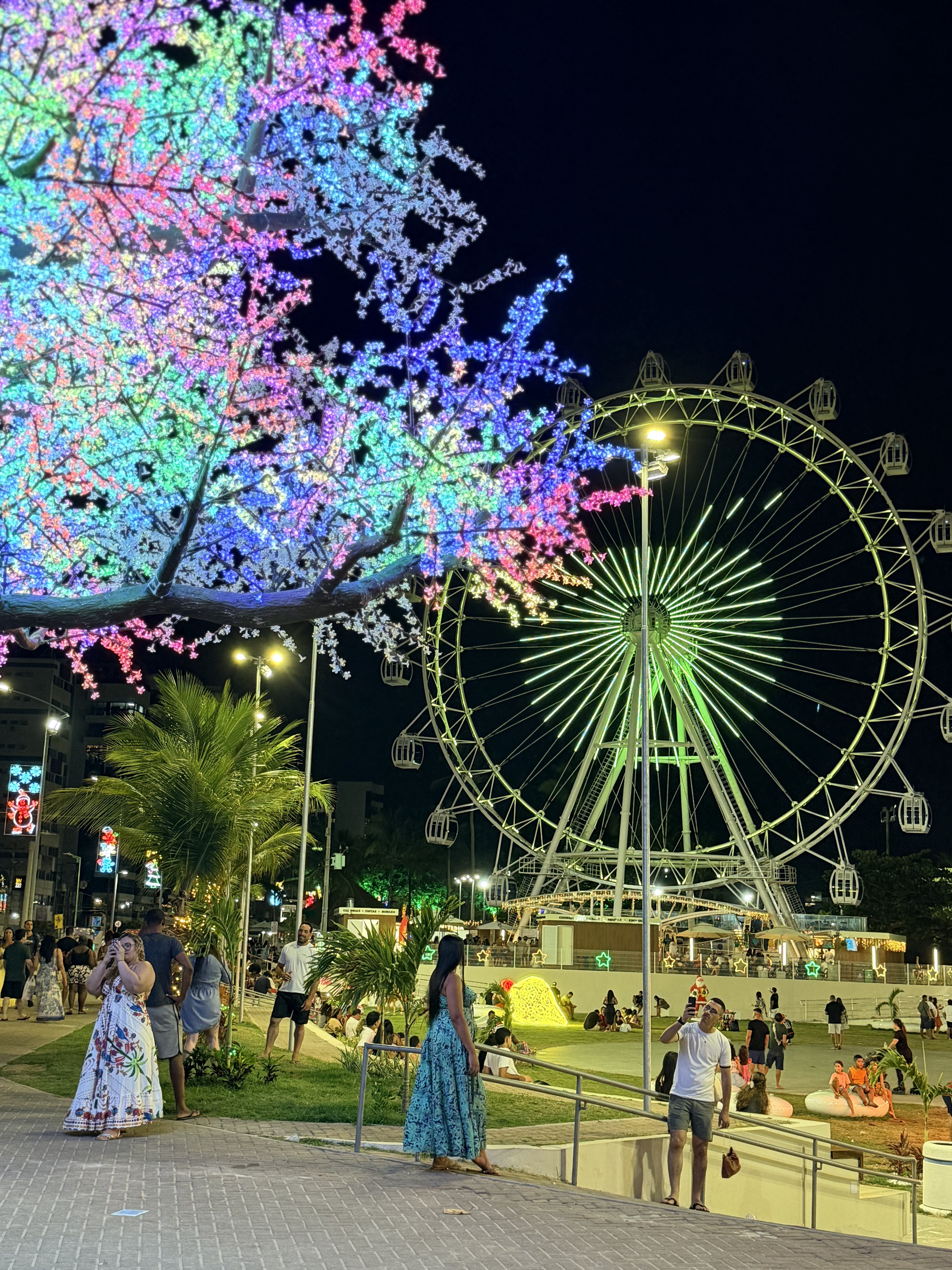 Quem também se surpreendeu foi o casal baiano João Mota e Radimila Santana, ambos enfermeiros, que chegaram a Maceió após uma longa viagem de carro. Antes mesmo de ir para a hospedagem, avistaram o parque e a Roda Gigante e decidiram levar a pequena Mavi, de 4 anos, para brincar e conhecer a decoração.