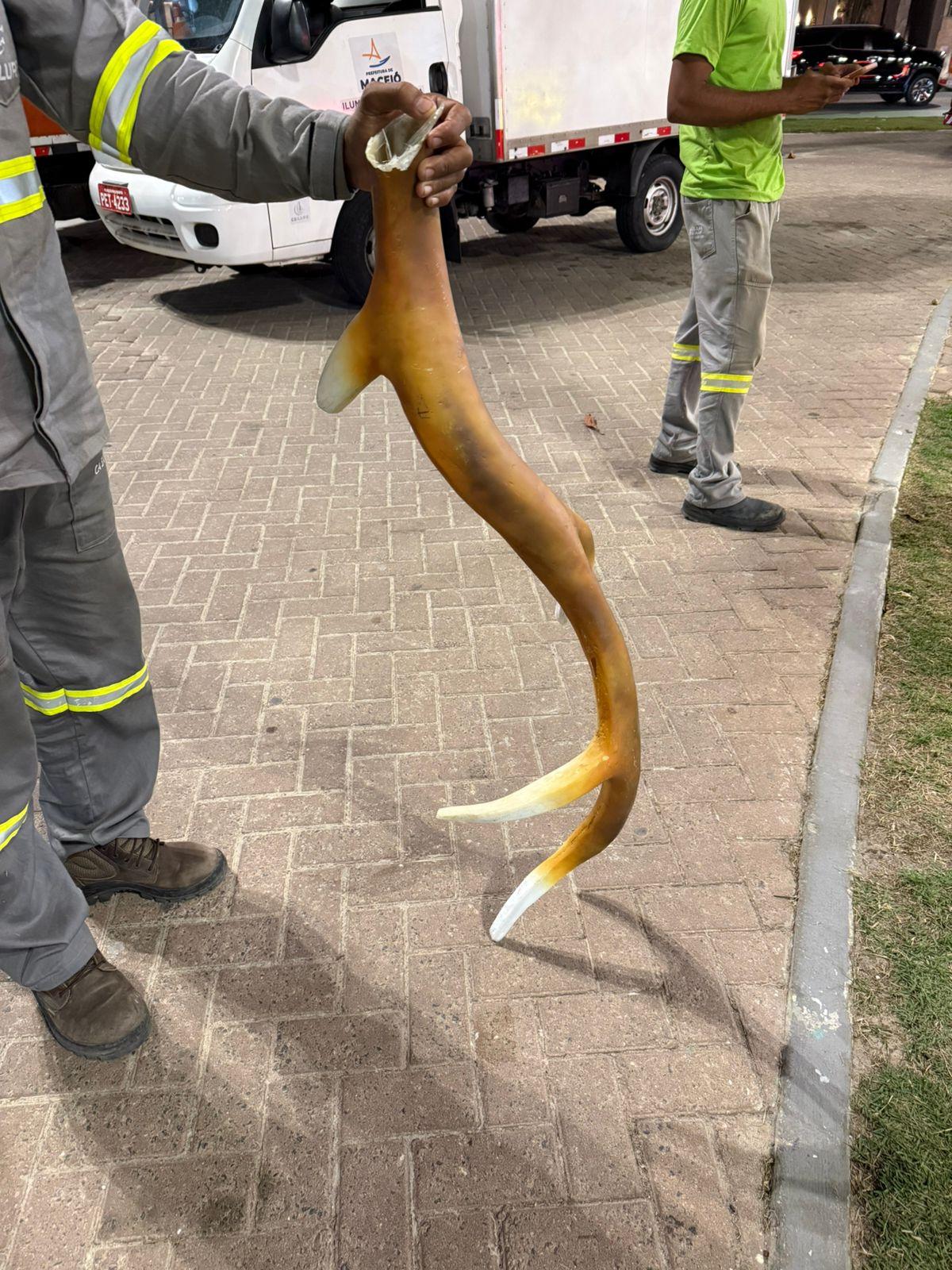 Renas de Natal tiveram chifres quebrados; Ilumina Maceió, responsável pelos equipamentos, trabalha para repor peça danificada