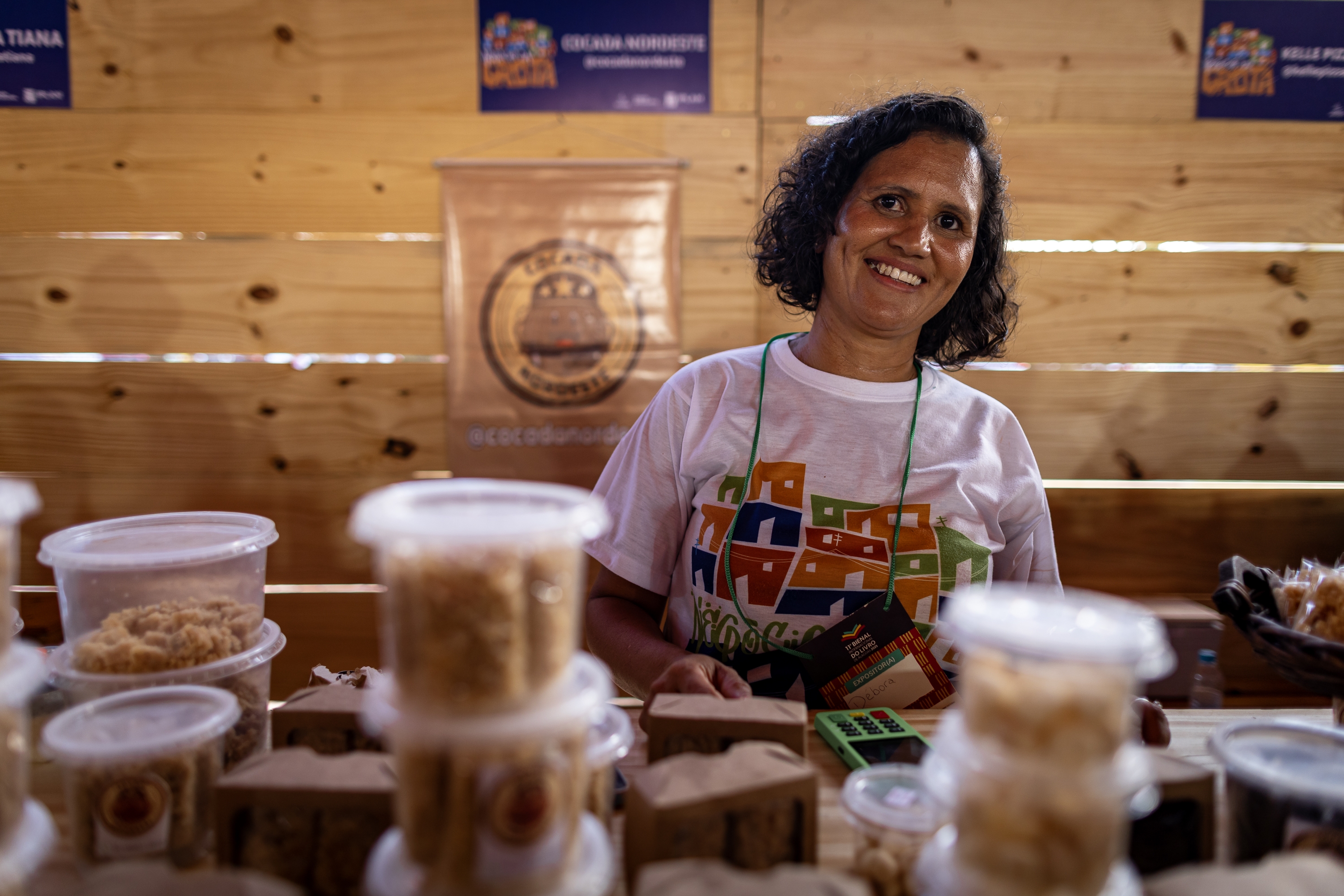 Débora Kelly, da Cocada Nordeste, é uma das empreendedoras presentes na exposição. À frente de um negócio que oferece uma grande variedade de cocadas e outros doces típicos da região, ela conta que o evento tem sido uma maneira de divulgar seu trabalho e expandir o alcance da marca.