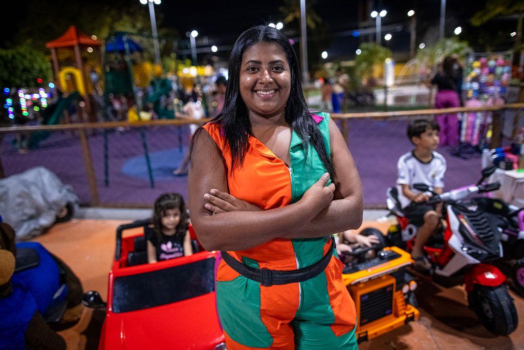 “A gente leva os brinquedos e coloca um preço popular de R$10,00 pra caber no bolso de todos os pais. No shopping é muito mais caro e nem todo mundo pode pagar, então, aqui todo mundo pode se divertir. Já rodei várias praças da capital, no Mirante da Santa Amélia, Parque Linear no Benedito, na Praça do Osman Loureiro e agora estou no Graciliano Ramos, e ver essa transformação em toda a capital é muito gratificante. É renda pra gente e alegria pras crianças”, revela Anne.