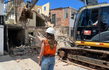 Imóvel de dois pavimentos é demolido na Levada por risco de colapso