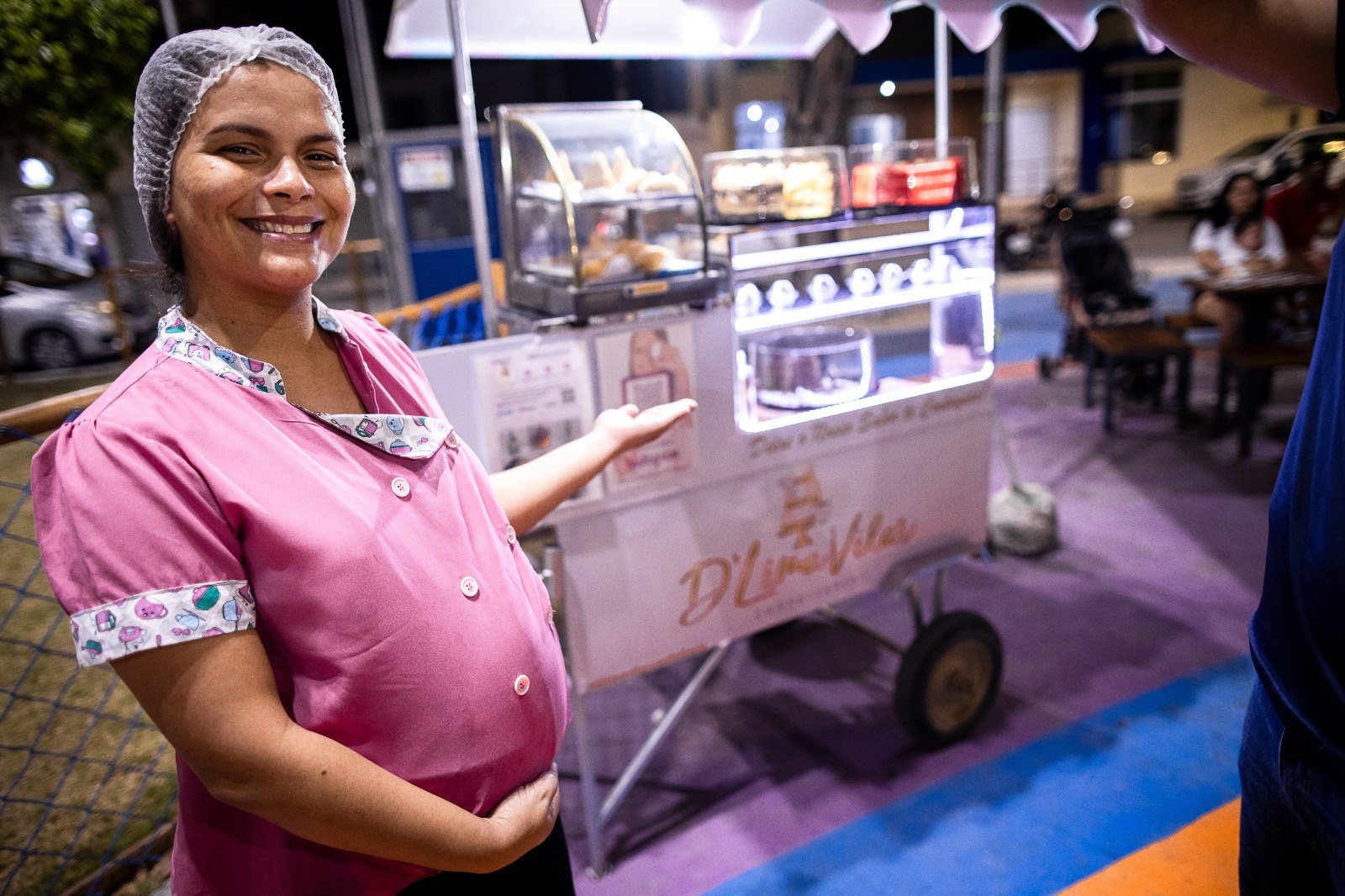 A confeiteira Isabella de Cássia, 27 anos, proprietária da Confeitaria Nova Onda (@confeitarianovaonda), viu na nova praça do bairro o cenário ideal para expandir seu negócio e se conectar, ainda mais, com os clientes.