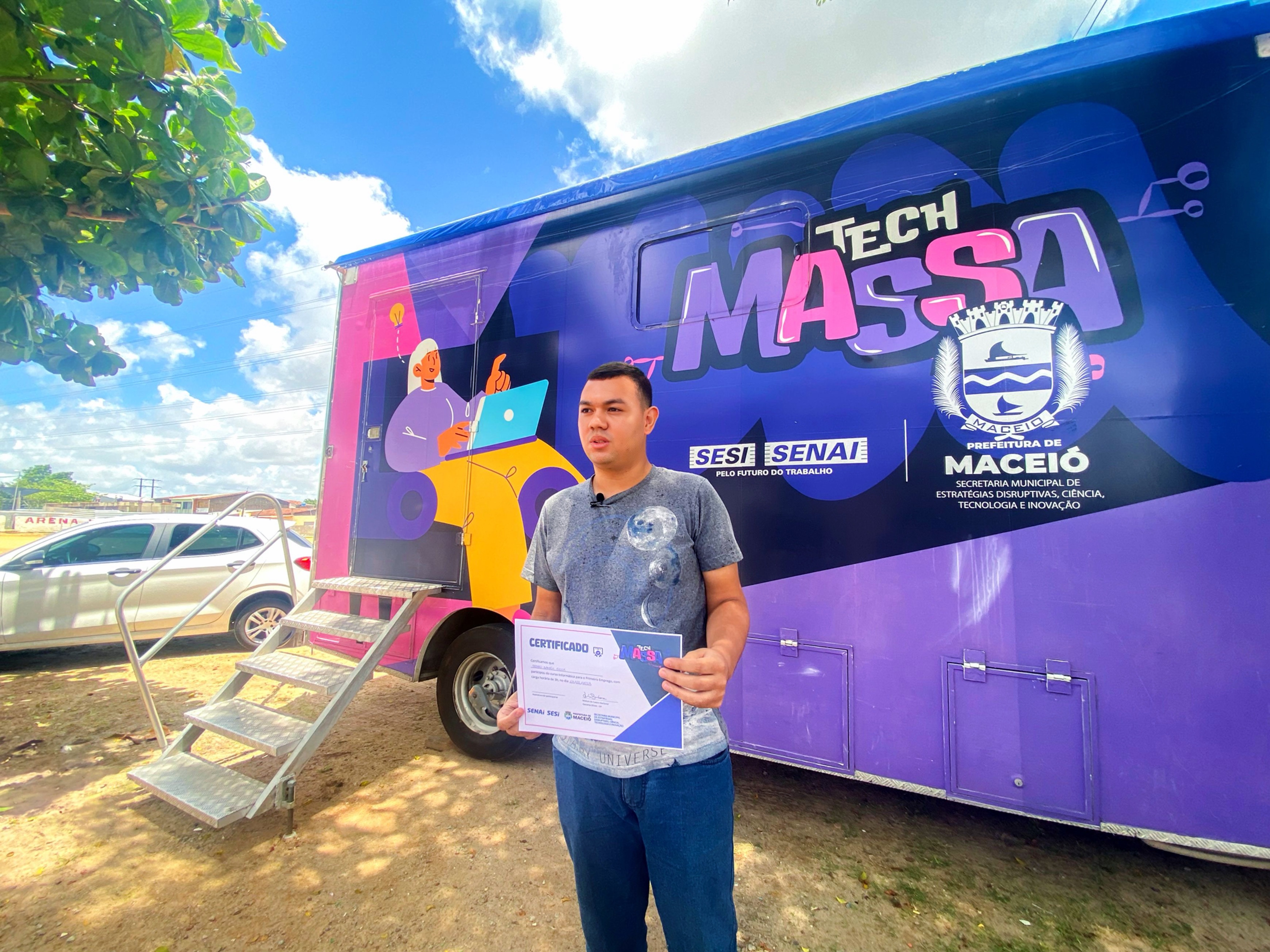 Pedro Daniel Silva, de 19 anos, sempre sonhou em fazer um curso de informática, mas os altos custos e a falta de tempo tornavam o desejo distante. Quando o Tech Massa desembarcou no Conjunto Rosane Collor, na parte alta da capital, ele viu a chance que esperava há anos e não pensou duas vezes antes de se inscrever.