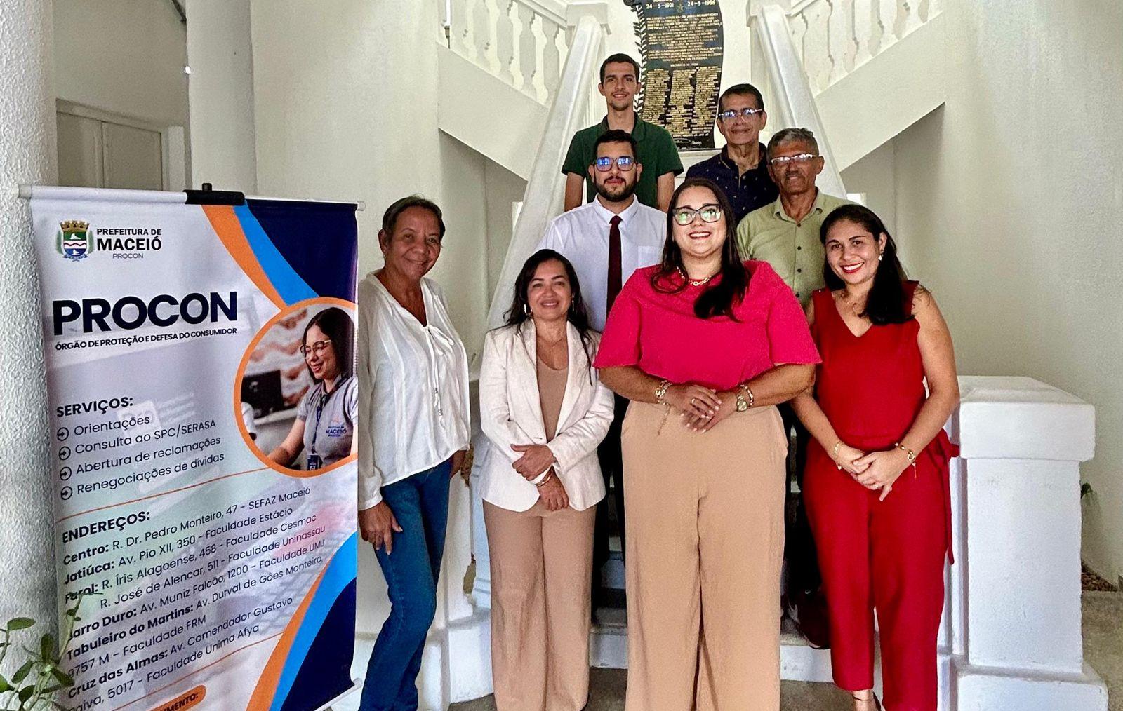 Estiveram presentes na reunião a Diretoria Executiva do Procon Maceió, composta pela titular e presidente do Conselho, Cecília Wanderley, e Pedro Vinicius; representantes da Secretaria Municipal de Gestão de Pessoas e Patrimônio(Semge), Andrea Correia e Antônio Pedro; da Secretaria Municipal de Fazenda(Sefaz), Magda Matos; da Secretaria Municipal de Governo e de Subprefeituras(Segov), Sarah do Nascimento Gama; do Instituto de Defesa dos Consumidores de Alagoas(Idecon/AL), representado por Tony Cloves; e da Ordem dos Advogados do Brasil em Alagoas(OAB/AL), representada por Ítalo Matheus.