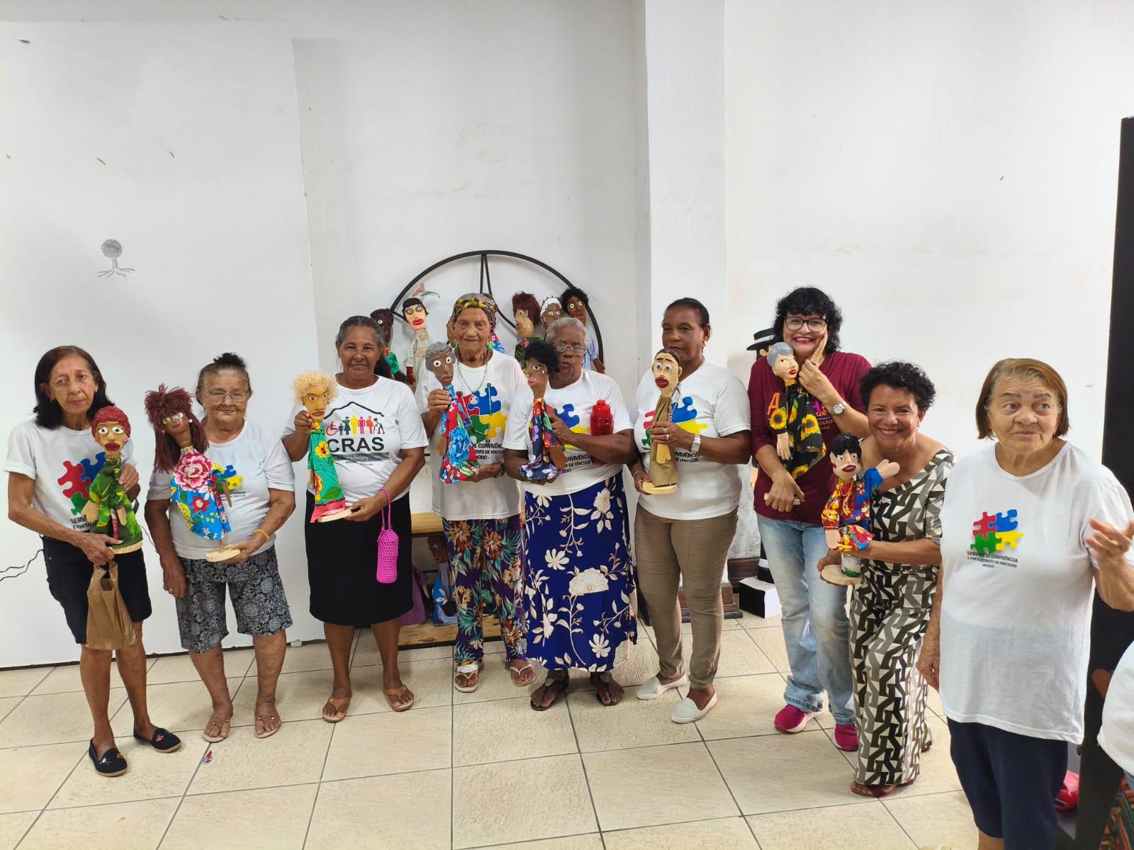 Idosas do Serviço de Convivência e Fortalecimento de Vínculos(SCFV) do Centro de Referência de Assistência Social(Cras) Área Lagunar estão participando do projeto Oficinas de Mamulengos e expondo seus trabalhos na Biblioteca Graciliano Ramos, no Centro de Maceió. A exposição, que acontece até o dia 24 de abril, reúne mamulengos feitos em oficinas conduzidas pela a mestra artesã e bonequeira Adriana Chaluppe.