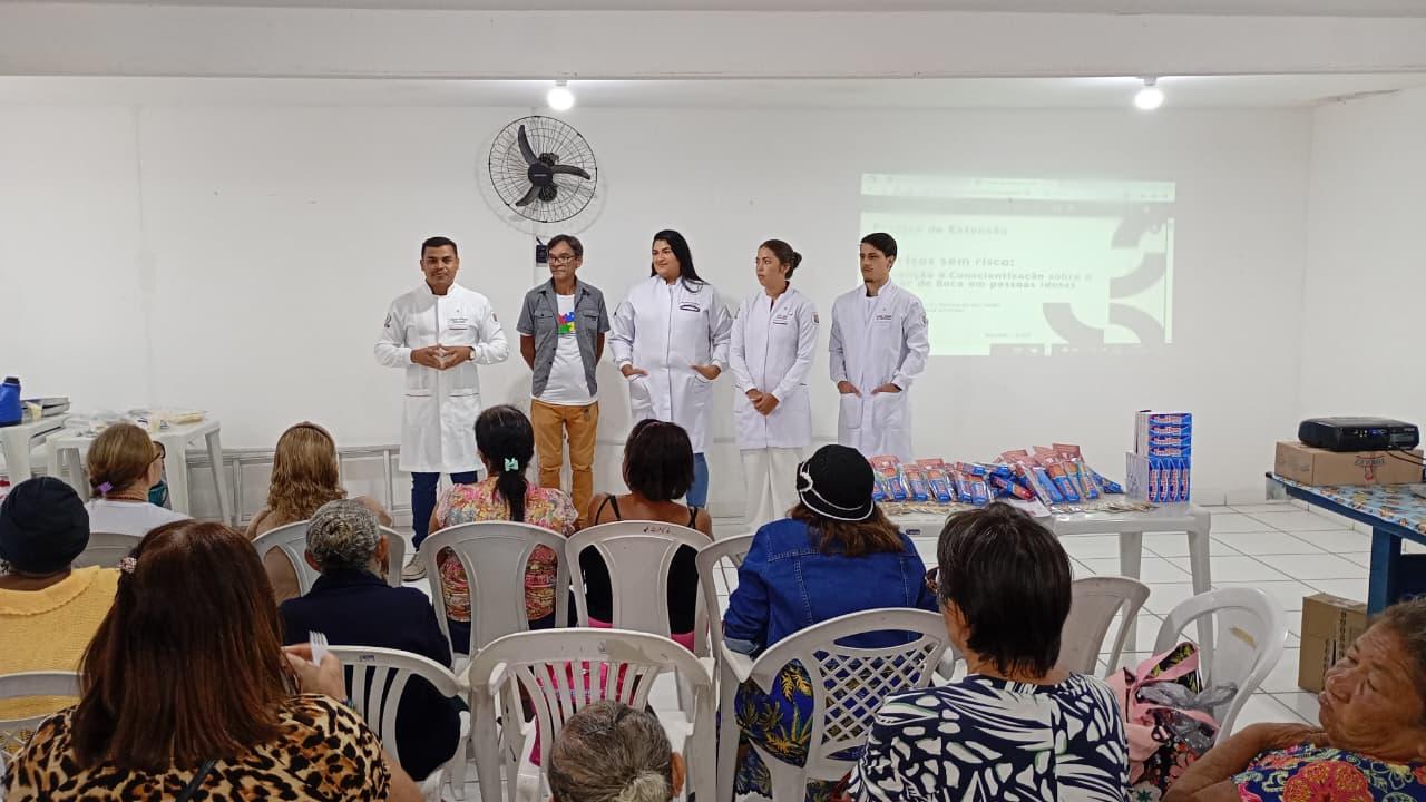 Os estudantes ensinaram ao grupo de idosos sobre sinais de alerta do câncer de boca, como se prevenir, como fazer o autoexame da boca e dicas para ter um sorriso saudável. Eles também entregaram kits de higiene bucal, chaveiros e panfletos informativos.