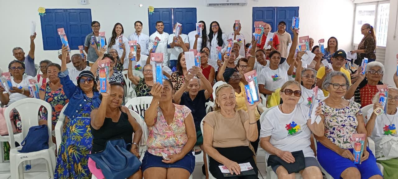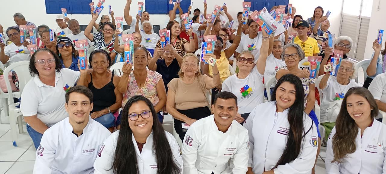 Idosos do Serviço de Convivência e Fortalecimento de Vínculos(SCFV) de do Centro de Referência de Assistência Social (Cras)Dom Adelmo Machado no bairro do Prado, participou de uma manhã rica de informações sobre saúde bucal com estudantes do curso de Odontologia da Uninassau Maceió. A ação faz parte do Projeto de Extensão da faculdade: Sorrisos em Risco - Prevenção Câncer de Boca em idosos.