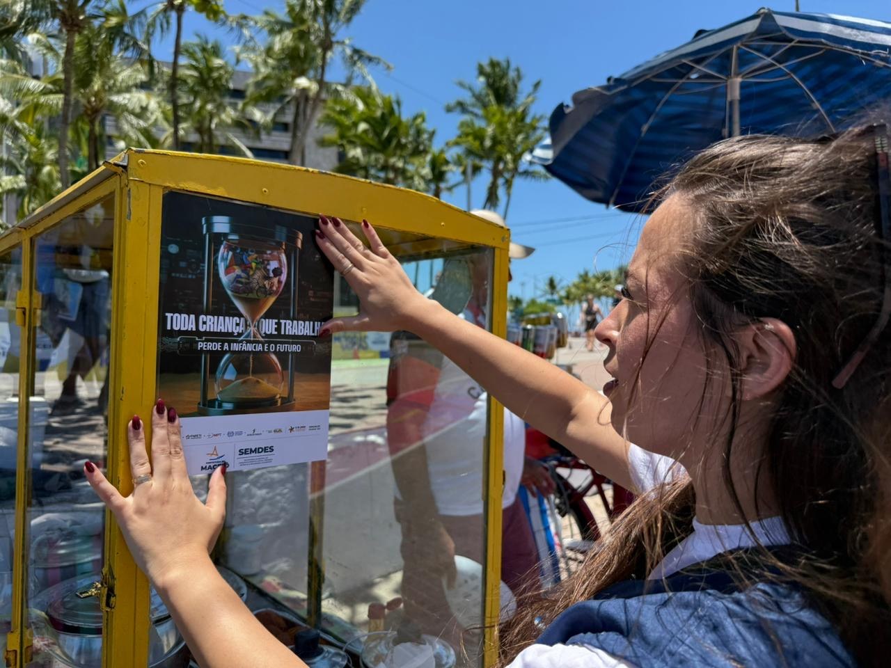 A Secretaria Municipal de Desenvolvimento Social, Primeira Infância e Segurança Alimentar (Semdes) realizou, na manhã desse domingo(19), uma ação de combate ao trabalho infantil na Rua Aberta, na orla de Maceió.