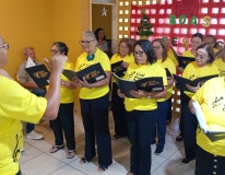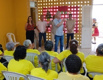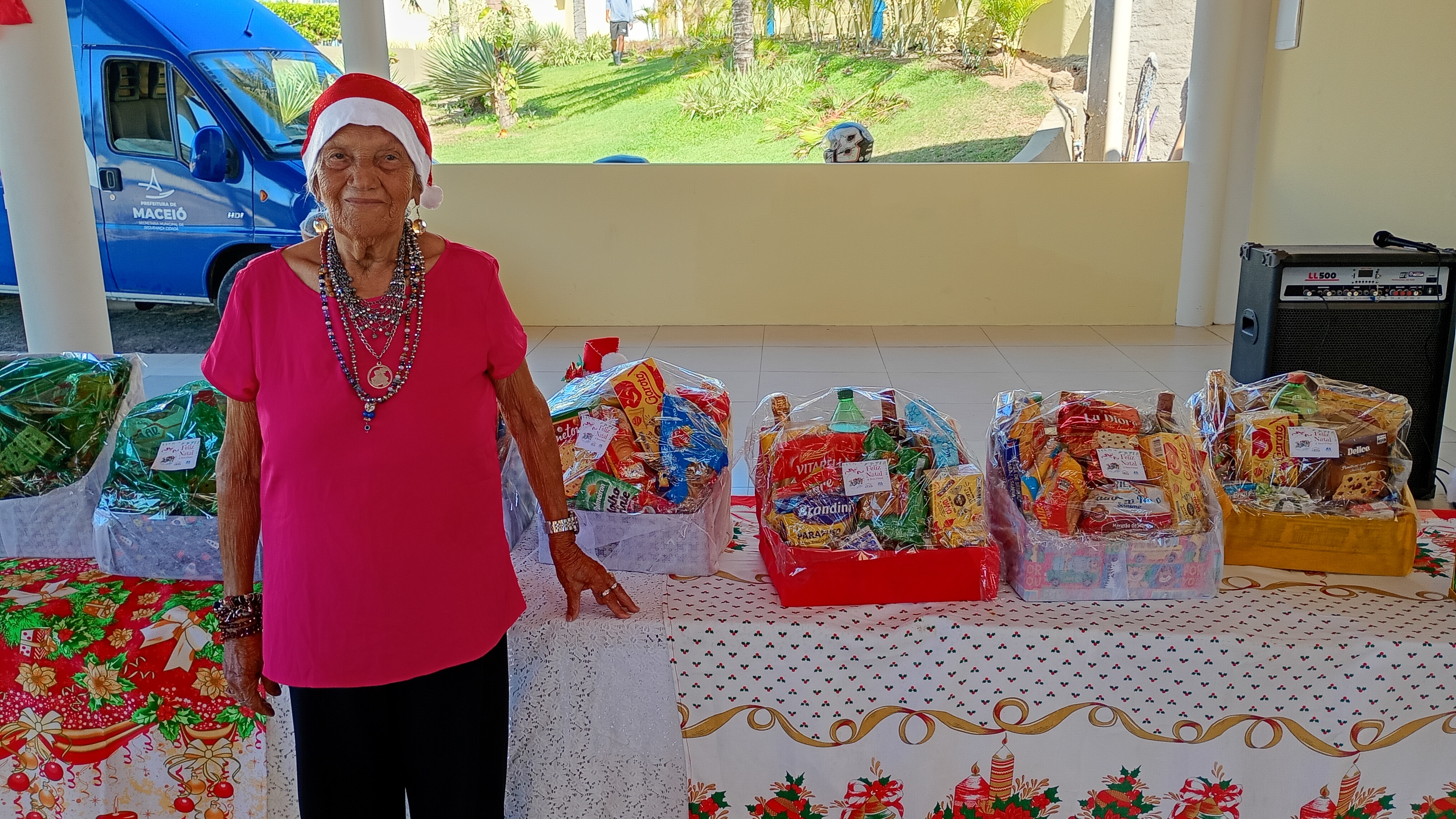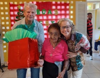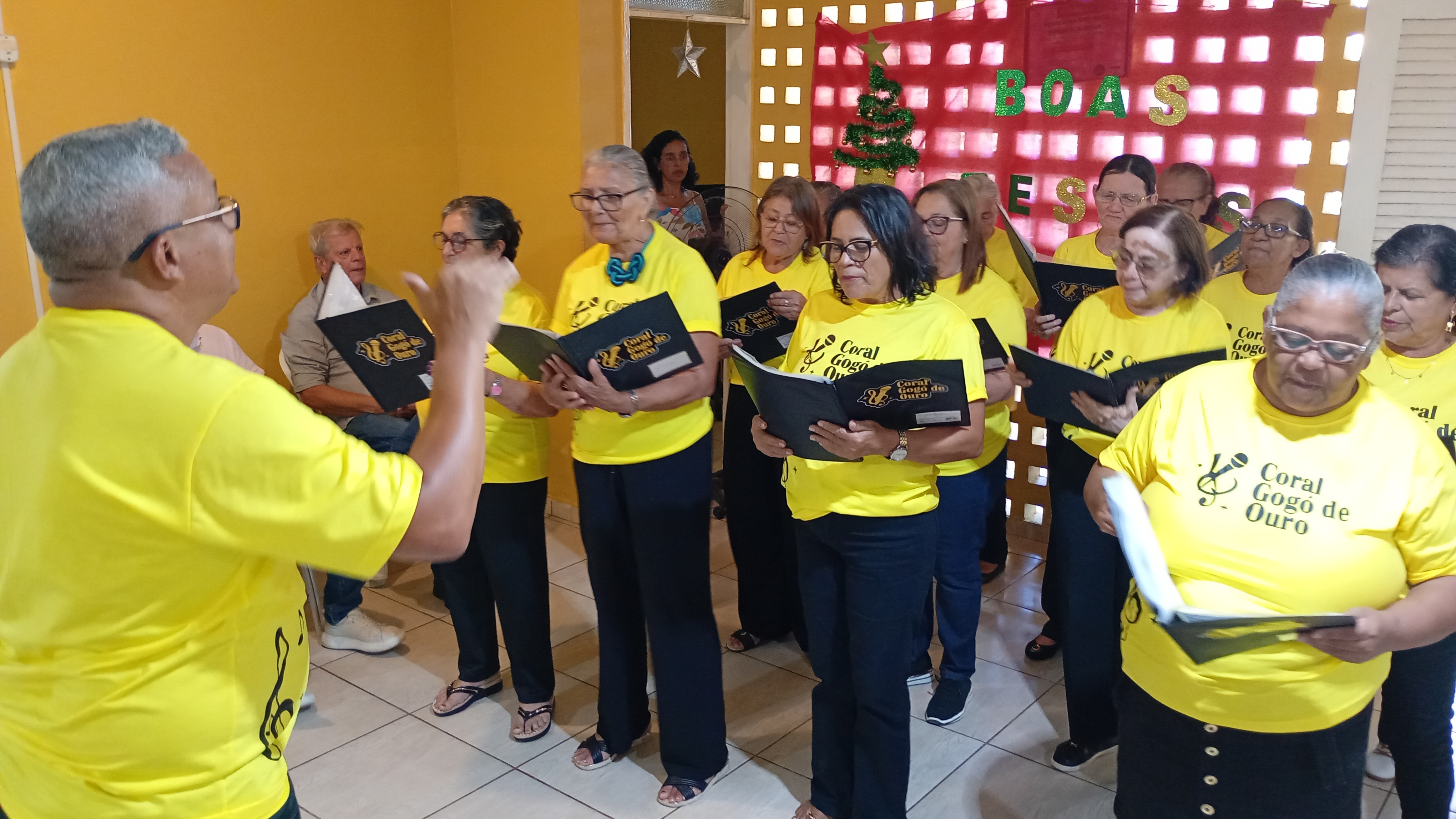 E o grupo de idosos e mulheres do Cras Cacilda Sampaio se reuniu também para celebrar mais um ano cheio de atividades. Teve apresentação dos grupos de pastoreio da unidade e do Coral Gogó de Ouro do Cras Santos Dumont. Também houve sorteio de cestas e brindes para as mulheres e idosas do coletivo.
