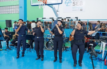 Banda da Guarda Municipal participa de momento cívico no Colégio SEB