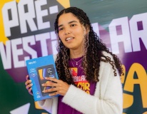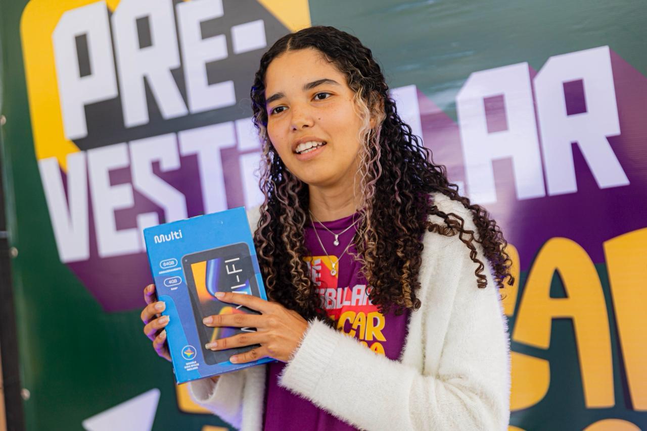 O secretário também participou do sorteio de brindes e anunciou a estudante Amanda Sandriele, de 18 anos, como a ganhadora de um tablet.