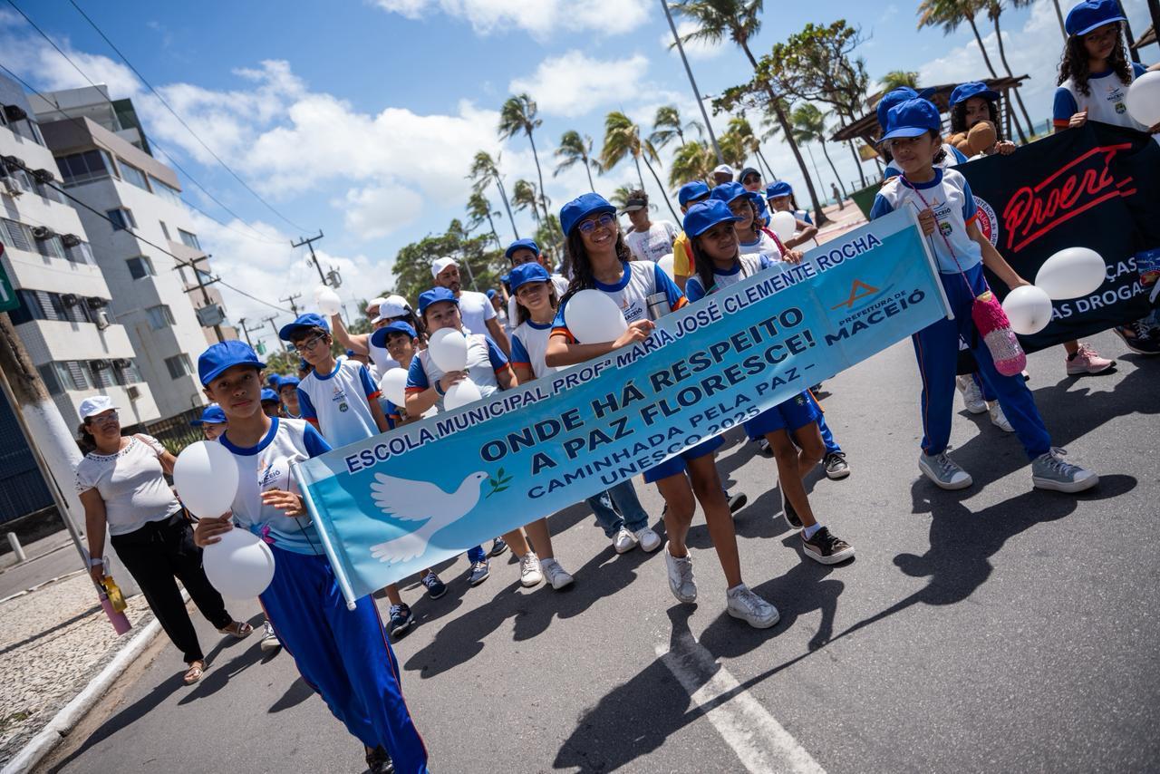 Na manhã deste sábado (4), a praia de Jatiúca, em Maceió, foi palco de mais uma Caminhada da Paz, uma iniciativa da Unesco, em parceria com a Secretaria Municipal de Educação (Semed). O evento reuniu centenas de estudantes da rede pública municipal de ensino e de escolas particulares.
