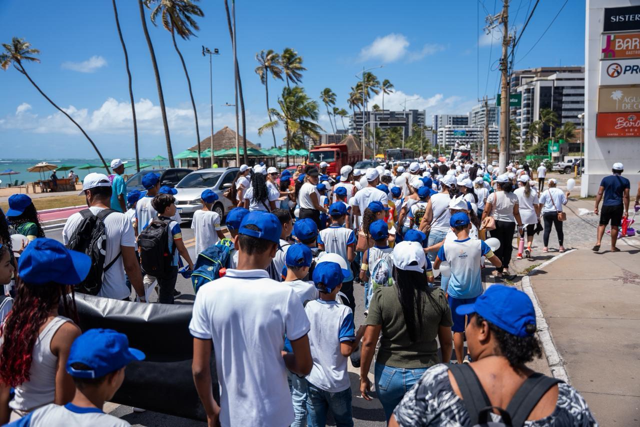 Caminhada da Paz leva centenas de estudantes de escolas municipais à praia de Jatiúca