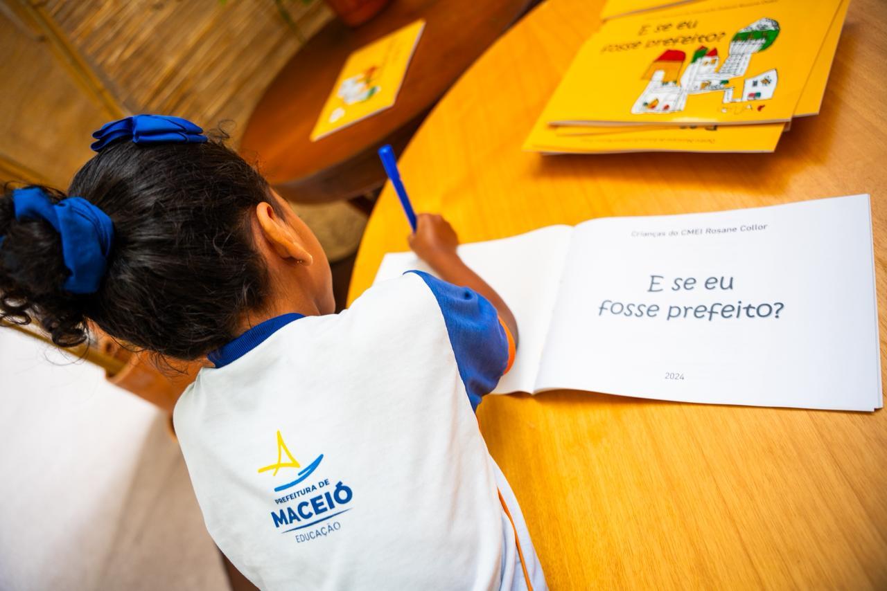 Os pequenos do CMEI Rosane Collor, no Jacintinho, apresentaram e "autografaram" o livro "E se eu fosse prefeito", resultado do projeto "Olhar e Viver Maceió", da Coordenação Técnica de Educação Infantil da Secretaria Municipal de Educação(Semed). A obra reúne narrativas, desenhos e visões das crianças sobre a cidade, mostrando a importância da participação cidadã desde cedo e incentivando outros CMEIs e escolas a desenvolverem projetos semelhantes.