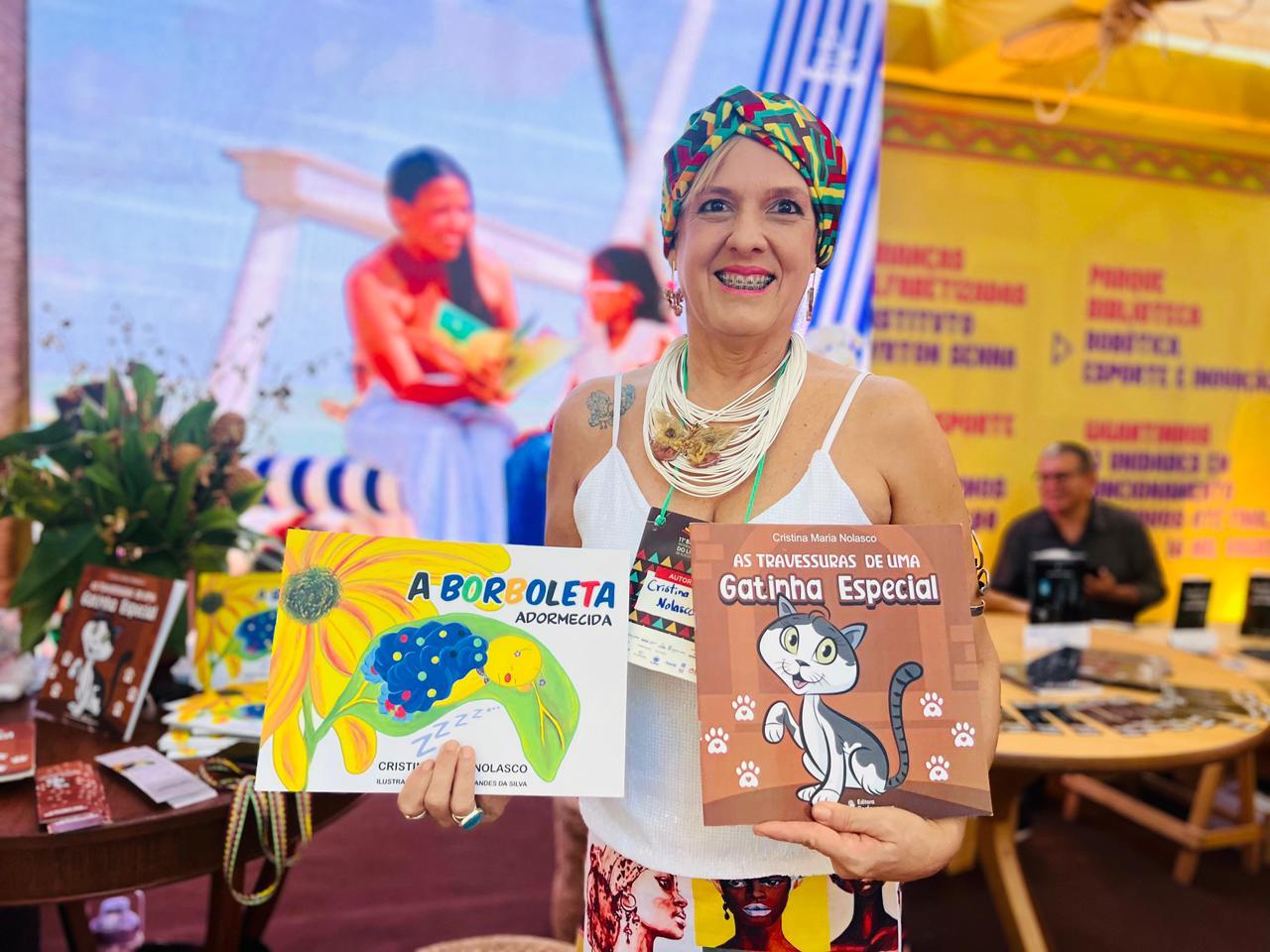 Professora municipal há mais de vinte anos e autora de livros infantis, Cristina Maria Nolasco compartilha o sentimento de estar lançando dois de seus títulos na Bienal. “Participar da Bienal aqui em Alagoas é uma emoção muito grande. Estou lançando meus livros A Borboleta Adormecida e As Travessuras de uma Gatinha Especial, ambos lançados este ano, e considero esse momento uma grande conquista, a realização de um sonho. Já tenho novas obras prontas e, com certeza, quero estar de volta na próxima edição para continuar compartilhando essas histórias.”