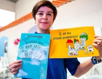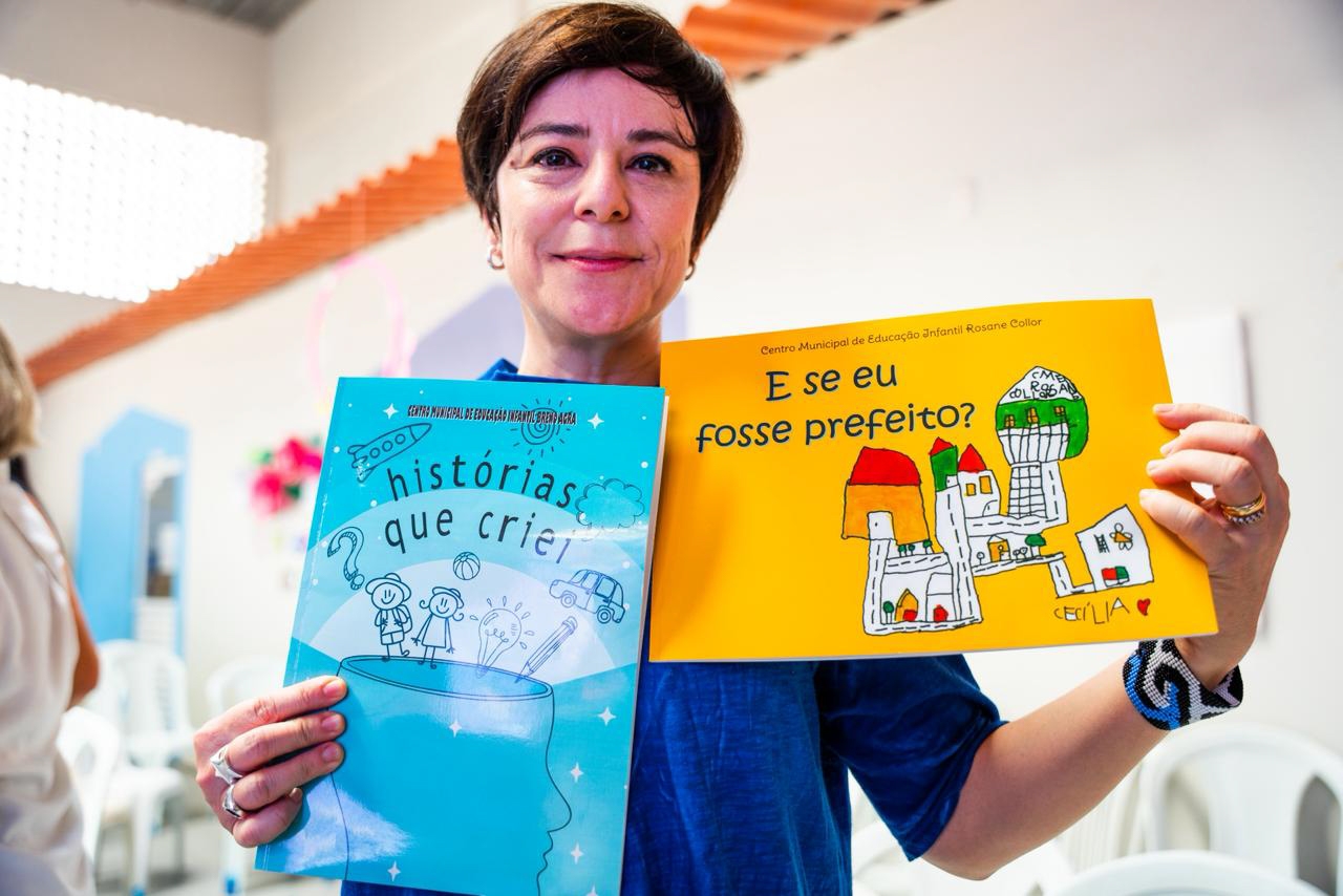 A escritora recebeu da Semed dois livros produzidos por crianças da rede pública de ensino de Maceió, que foram lançados também na Bienal. As obras foram ilustradas pelos pequenos.