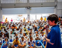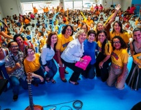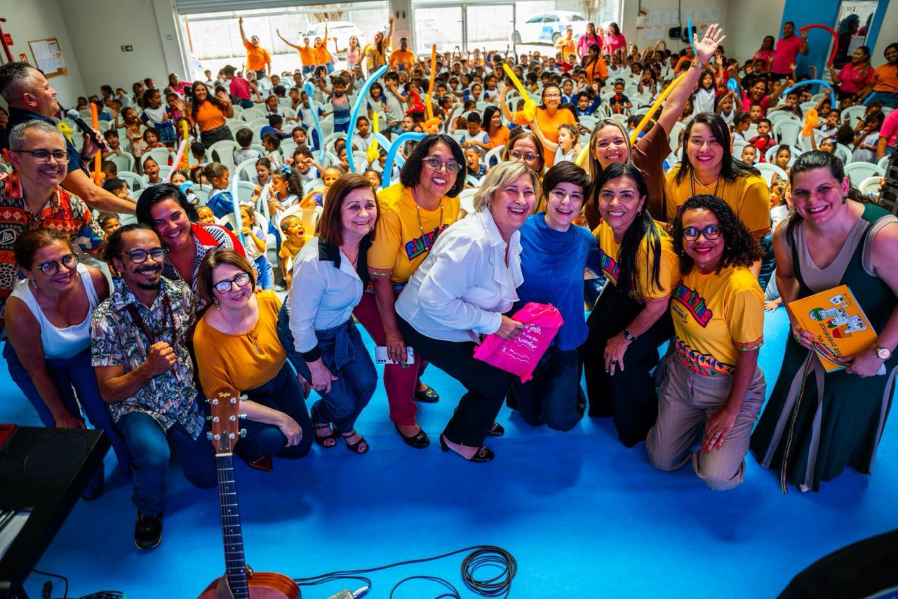 Animação, música, leitura e muita alegria marcaram o encontro de cerca de 500 crianças de 4 a 5 anos, que estudam no Gigantinhos Antares, com a escritora e cantora Fernanda Takai, autora do livro "O Cabelo da Menina". O encontro ocorreu na manhã desta quinta-feira (6).
