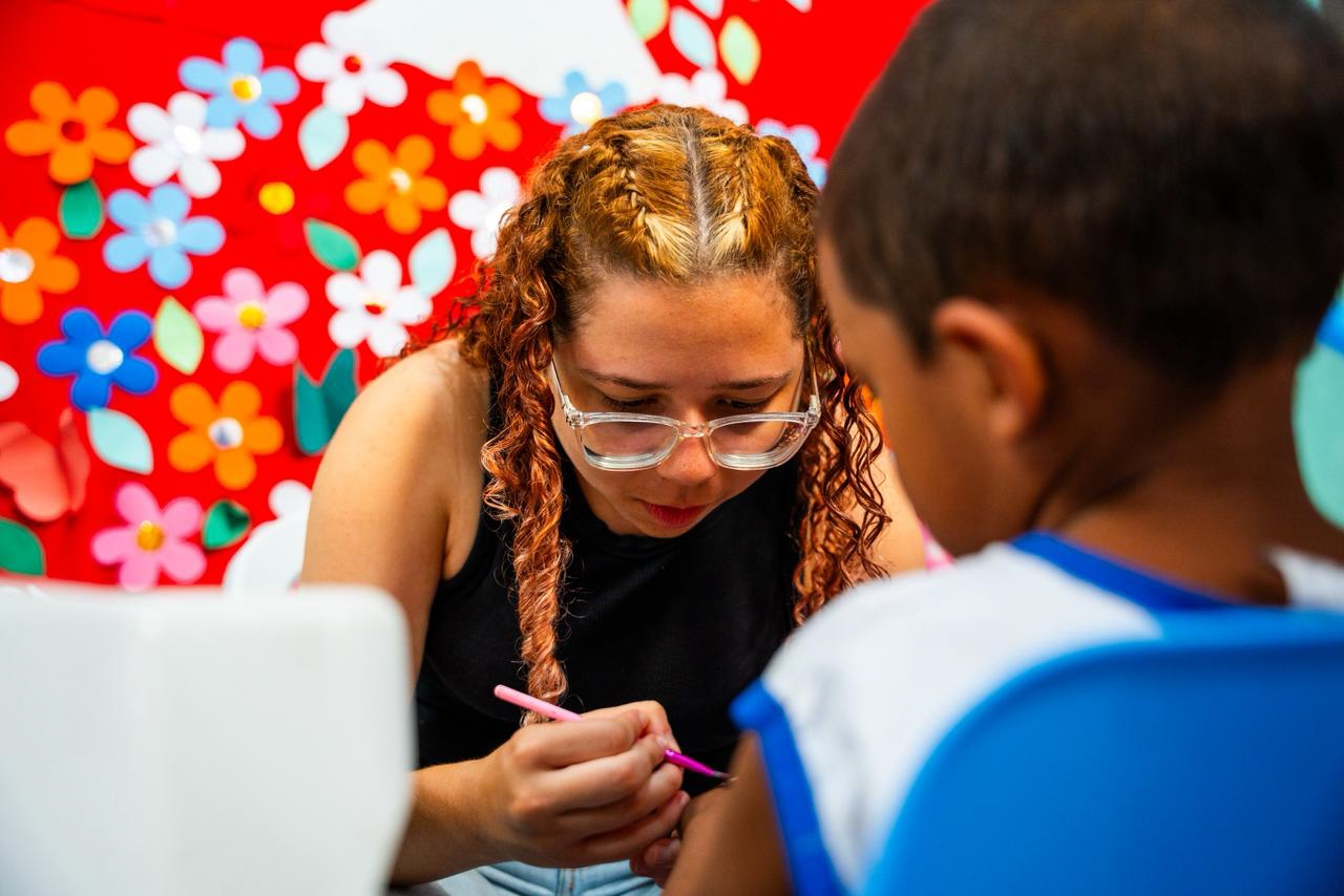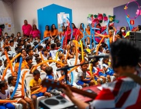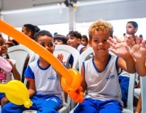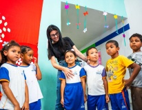 “Eu sou a pessoa que sou hoje porque eu tive grandes professores e professoras. Então, vocês estão aprendendo e com certeza vocês vão se lembrar dessas pessoas que fazem a diferença na vida de vocês”, disse para as crianças.