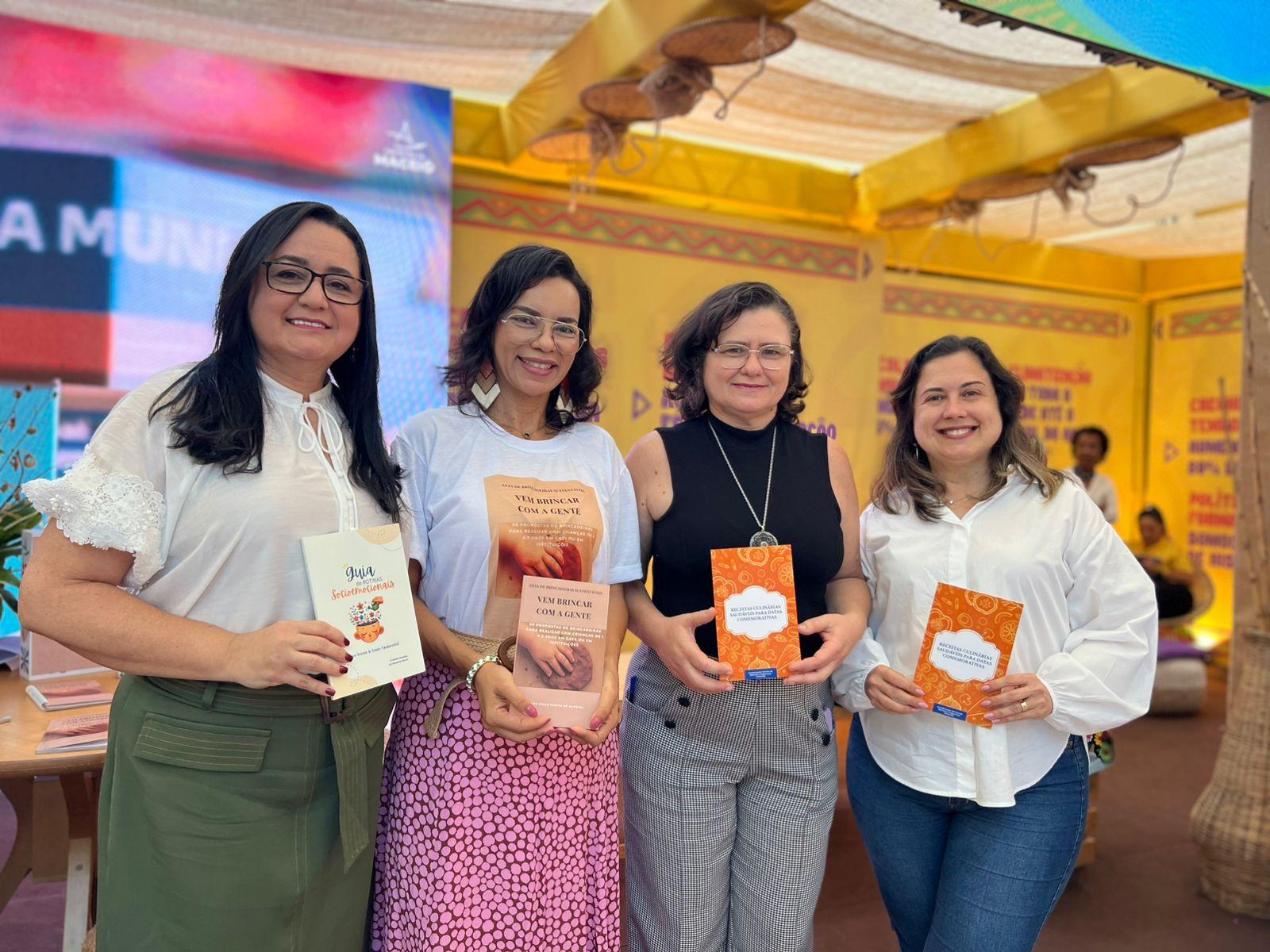 Entre os lançamentos da manhã, estiveram também o “Guia de Rotinas Socioemocionais”, de Cristiane Rocha, coordenadora de Educação Socioemocional da Semed; o Guia de Brincadeiras Sustentáveis “Vem Brincar com a Gente”, de Ana Paula Santos, técnica pedagógica da Semed; e “O Desenvolvimento de Crianças Autistas na Escola”, de Karla Vasconcelos, doutora em Educação e psicopedagoga do CMEI Padre Silvestre Vredegoor.