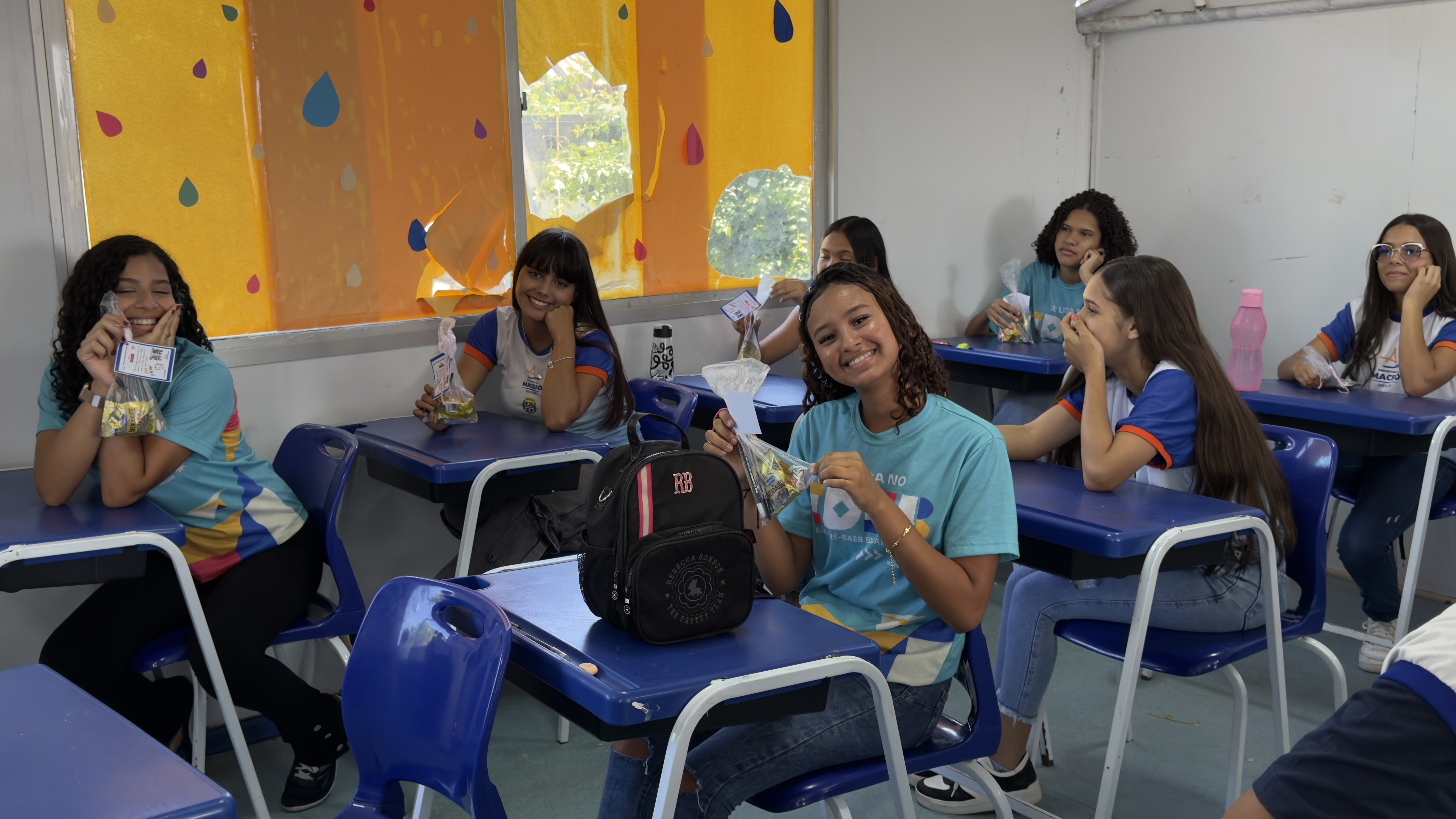 Durante a aplicação das provas, cada escola recepcionou os estudantes de um jeito diferenciado, com atividades lúdicas, música e entrega de lanches e kits, gerando mais engajamento.