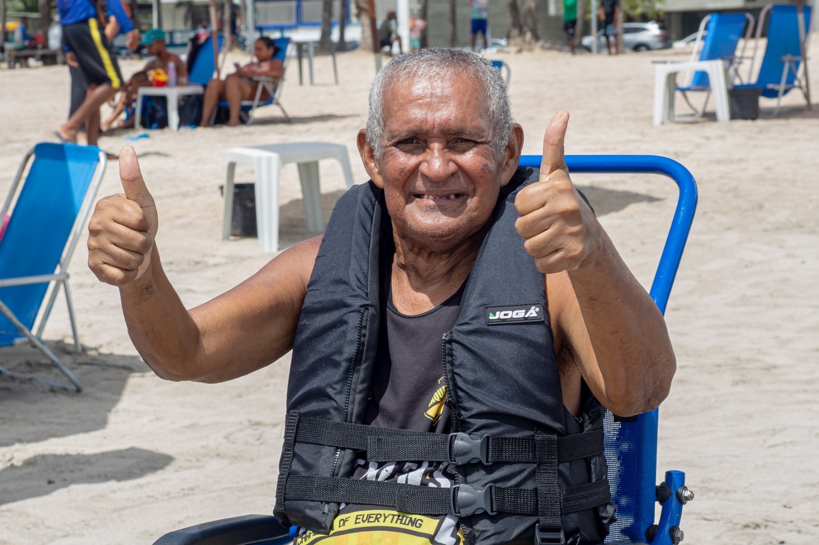 O projeto Praia Acessível começou o ano, colecionando histórias emocionantes. Uma delas é a do aposentado Joaquim Tenório Cassiano, que voltou a tomar banho de mar, após um longo período longe da praia.