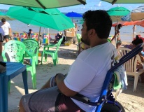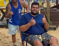 “A cadeira do meu esposo fica atolando na areia por conta das rodas e não conseguimos chegar até a água. Já a cadeira anfíbia, além de ser mais fácil de transportar na areia, nos permite levá-lo até o mar”, relatou Clezyane, que é natural de Maceió, mas mora em Brasília há mais de cinco anos.