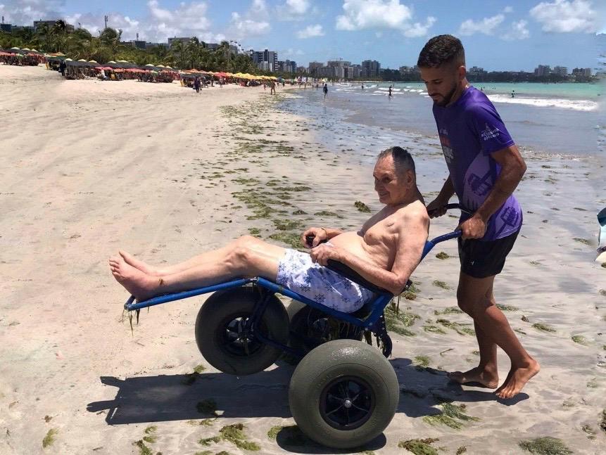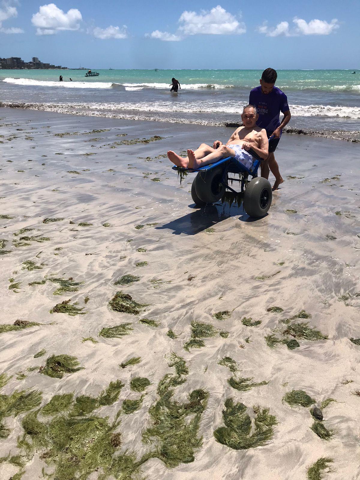 “Eu e minhas irmãs trouxemos o nosso pai para curtir as férias aqui em Maceió. Ele tem mobilidade reduzida, mas sempre manifestou o desejo de tomar um banho de mar. Ficamos surpresos e encantados com esse serviço da cadeira anfíbia. Vamos divulgar para todos os nossos contatos”, contou Milca, filha de Augusto Reis Luso.