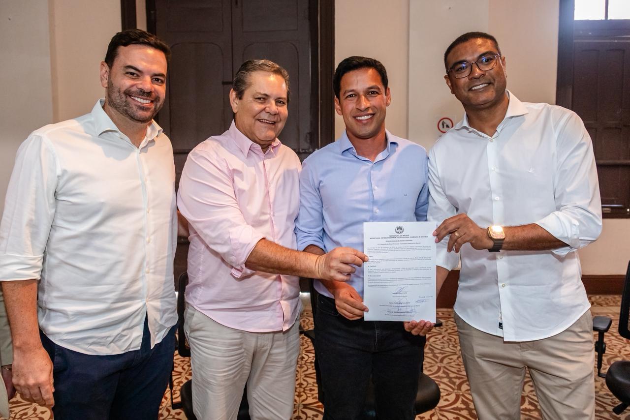 Rodrigo Cunha esteve ao lado do presidente da Associação Comercial, Kenedy Calheiros, do presidente da Câmara de Vereadores, Chico Filho, do secretário municipal da Indústria, Comércio e Serviços, Carlos Pinheiro da Costa Júnior, e demais representantes do empresariado local.