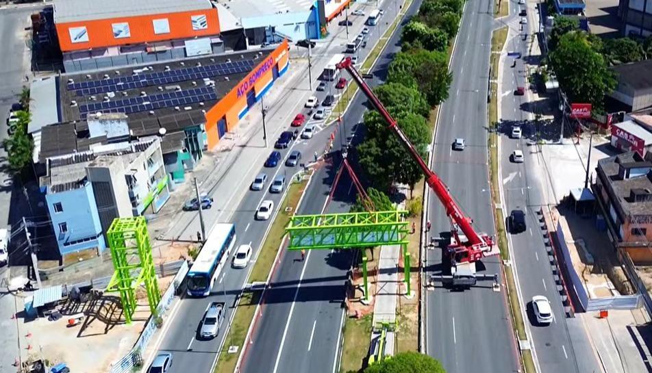 A montagem da passarela por módulos é um método de construção industrializado, que envolveu a fabricação de módulos fora de Maceió. Essa será a segunda peça fixada na estrutura superior que formará a passarela.