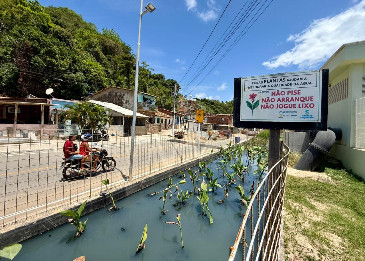 Orçado em R$ 76 milhões, o Renasce Salgadinho foi lançado 2021 e contempla desassoreamento do riacho e reurbanização de seu entorno. A recuperação do Salgadinho, que percorre 17 bairros e deságua na Praia da Avenida, vai mudar para melhor a vida de 300 mil pessoas.