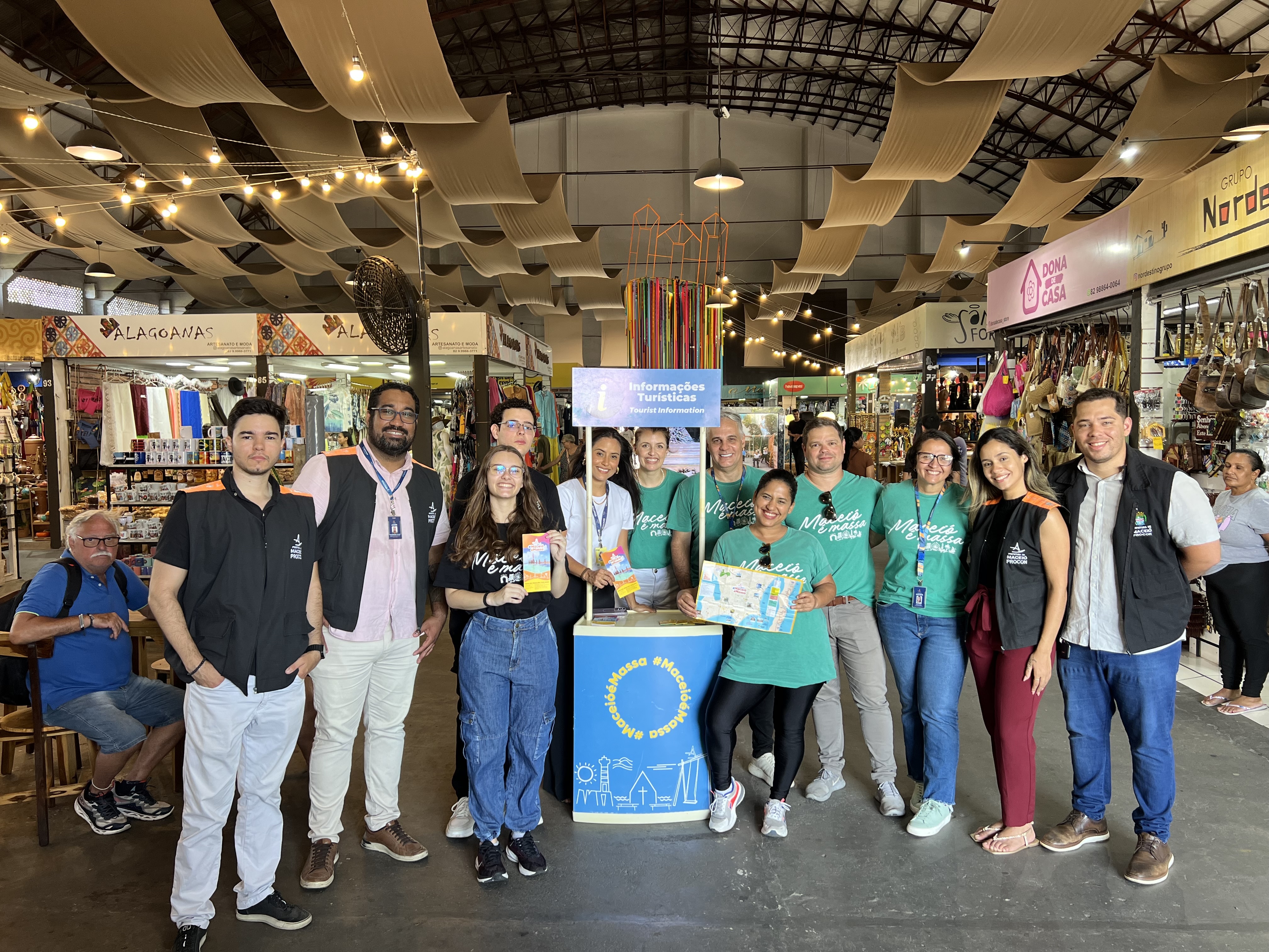 A equipe inclui atendentes bilíngues e profissionais capacitados para orientar os cruzeiristas sobre passeios, transporte, artesanato, atrativos culturais e os principais pontos instagramáveis da cidade, garantindo acolhimento de qualidade e uma experiência completa desde o desembarque.