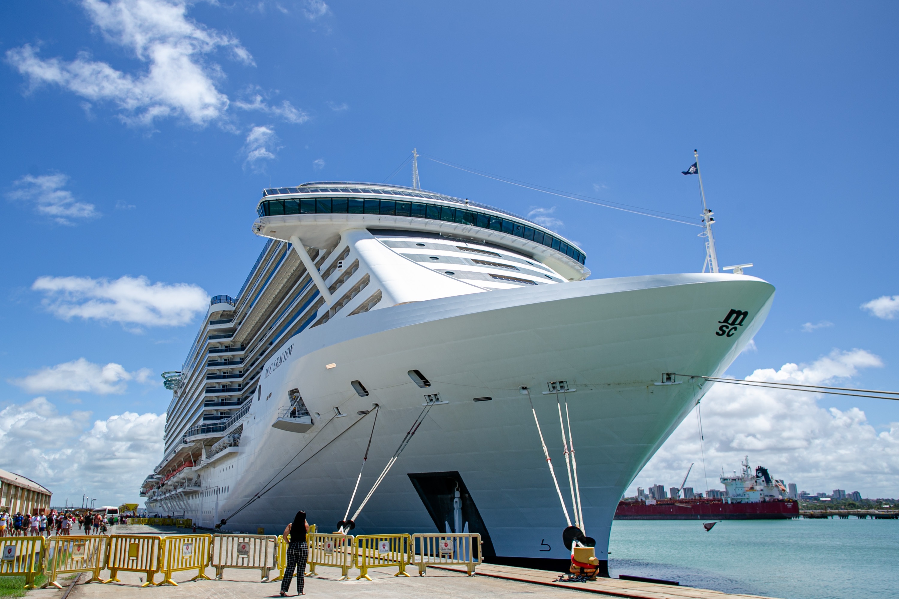 A embarcação da MSC veio de Salvador e segue viagem até o Porto de Santos, no litoral de São Paulo.