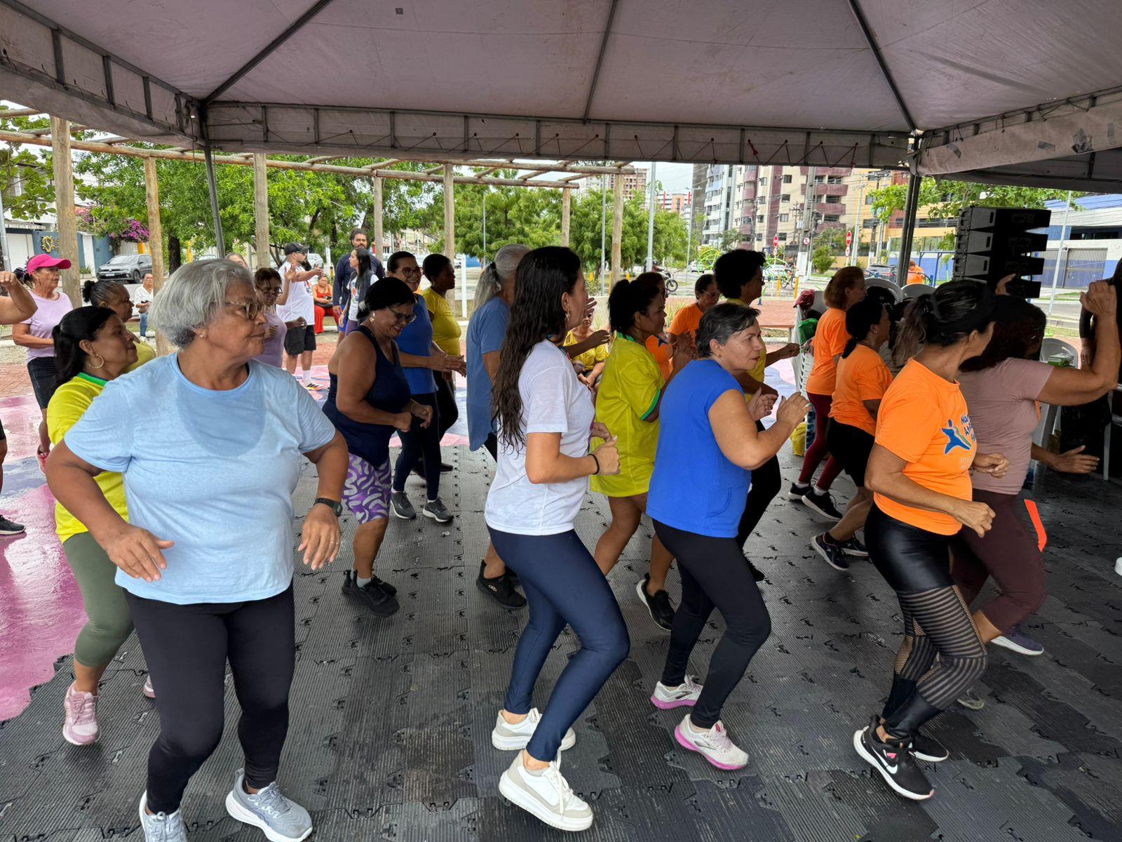 Reinaldo Alves também destacou a importância do apoio da Semuc para ampliar o alcance das ações, especialmente junto ao público idoso. “Temos uma parceria junto com a SEMUC, que é através do projeto AtivaMente, que envolve essa promoção das práticas corporais, potencializando principalmente o público idoso. Contribuímos com nosso corpo técnico, com profissionais de educação física, para poder enriquecer, trazer a mensagem da importância de se manter ativo”, relatou.
