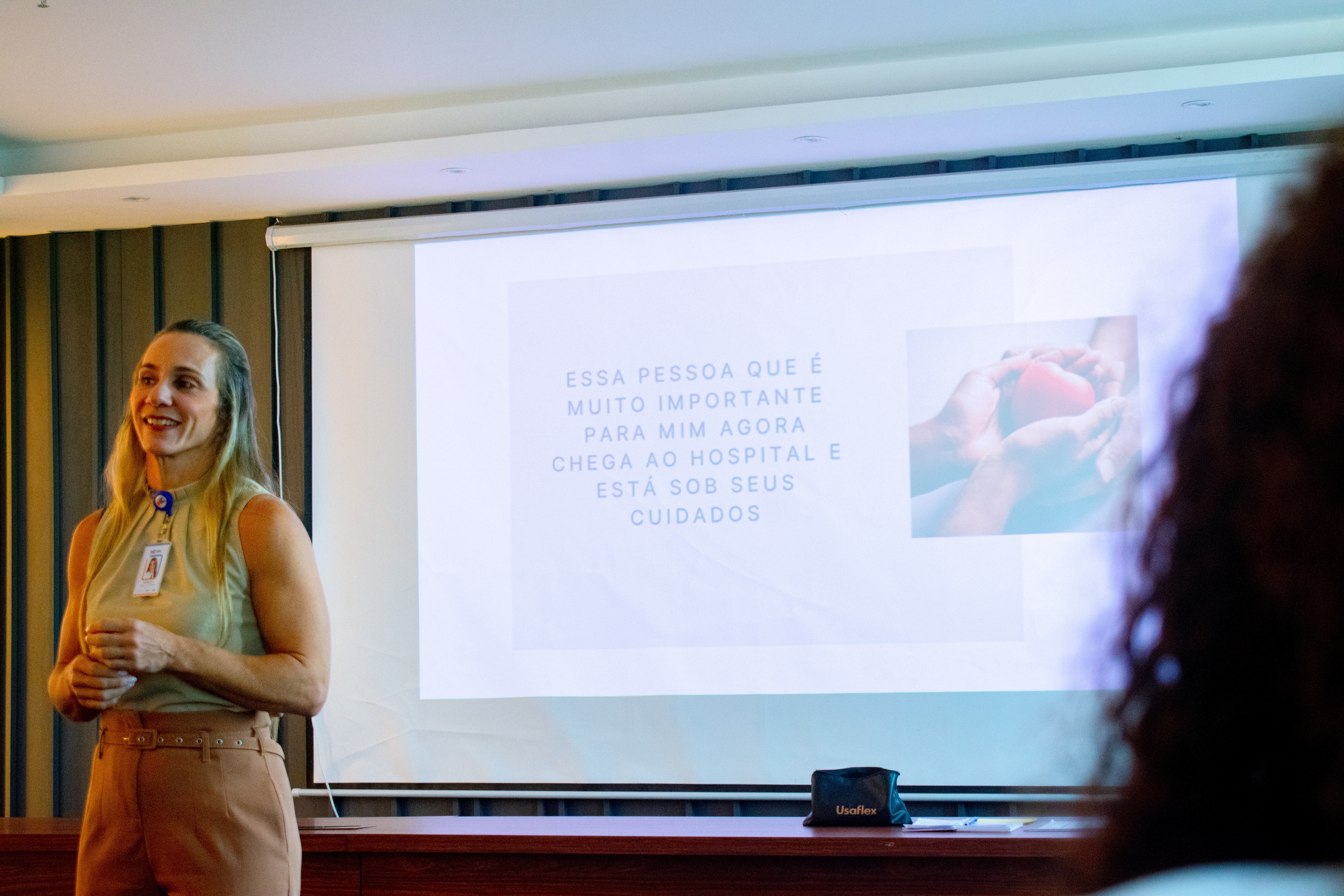 Para a psicóloga hospitalar Fabiana Bitu, o modo como cada pessoa é recebida impacta diretamente na experiência do paciente dentro da unidade. “O jeito que nós recebemos alguém pode aliviar ou intensificar o sofrimento desta pessoa. Então olhar, explicar, avisar e cumprir o que nós prometemos é fundamental. Esse treinamento junto com o pessoal do atendimento faz parte de todo o cuidado do nosso hospital”, orientou.