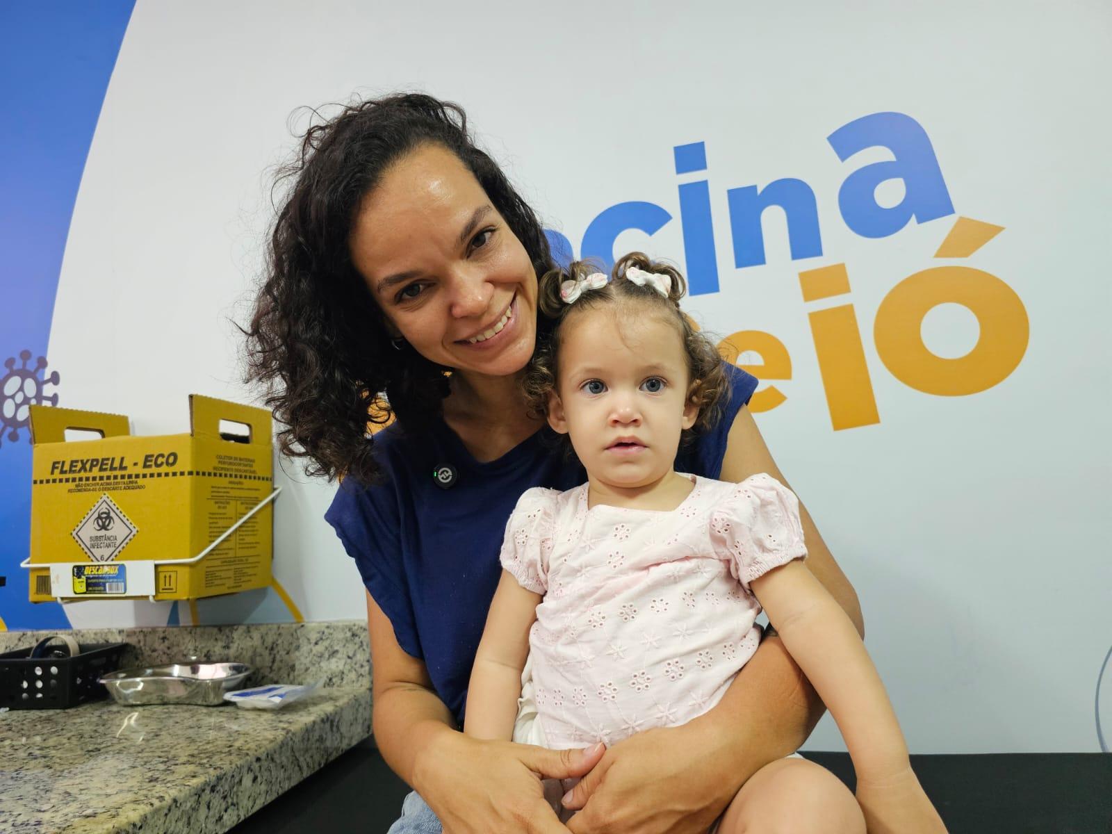 Uma das pessoas vacinadas no sábado foi a pequena Eva, que estava acompanhada da mãe Camila. “É muito importante manter a caderneta de vacinação atualizada e achei ótima essa mobilização dia de sábado, porque a gente que trabalha durante a semana, muitas vezes não tem como trazer os filhos”, destaca.