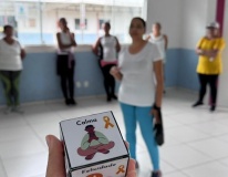 O mural, ao final, foi entregue às idosas como um símbolo do que elas mesmas construíram juntas, gerando emoção, pertencimento e fortalecimento de vínculos. O momento foi seguido por uma roda de conversa, em que as mulheres compartilharam motivações e experiências, e finalizado com um lanche de confraternização, reforçando o clima de acolhimento.
